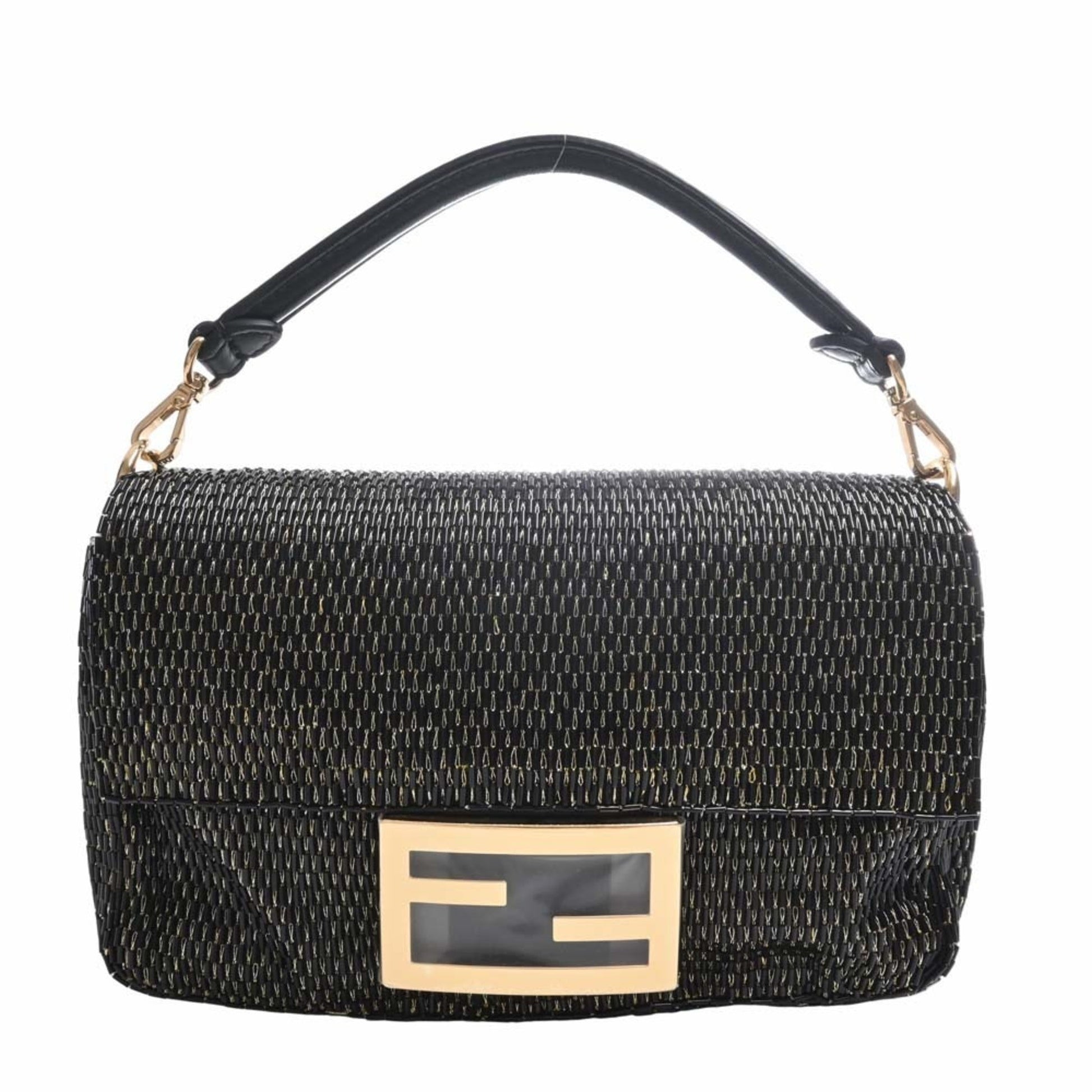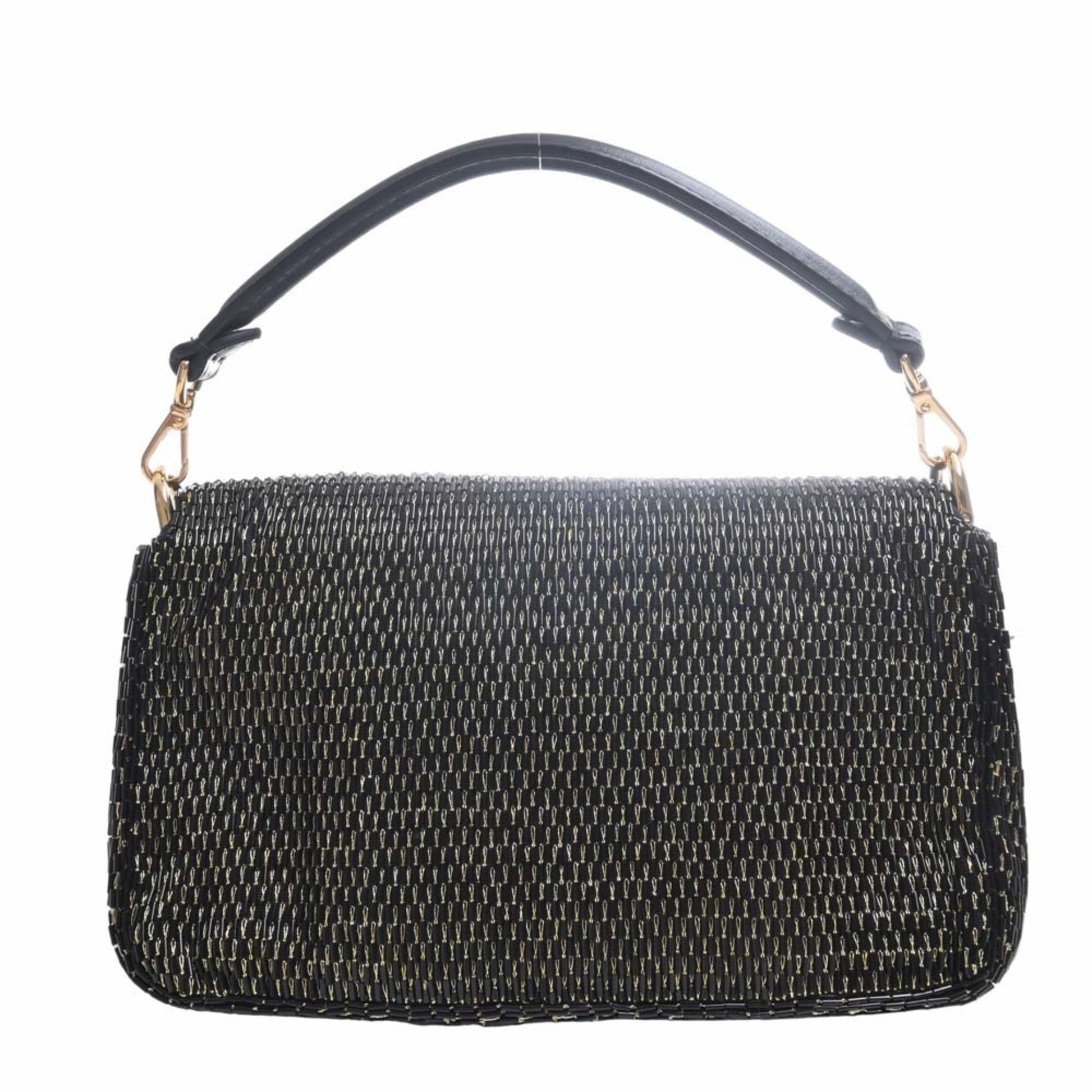 FENDI Leather Beads Bucket Chain Shoulder Bag 8BS017 Black Ladies