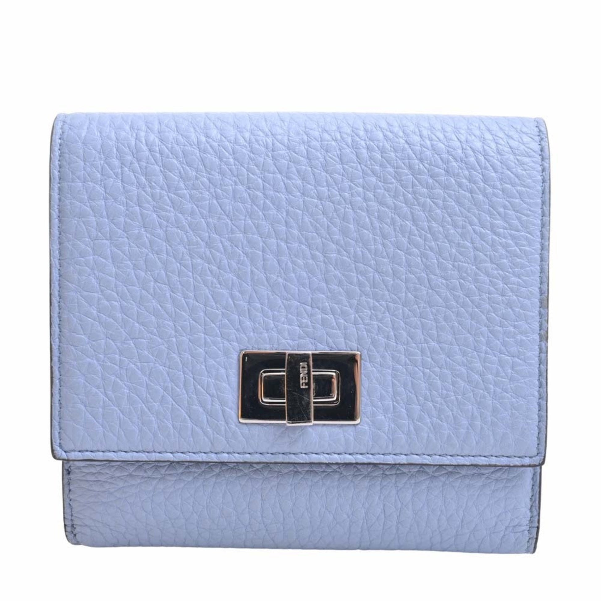 FENDI Leather Peekaboo Bifold Wallet 8M0438 Blue Ladies