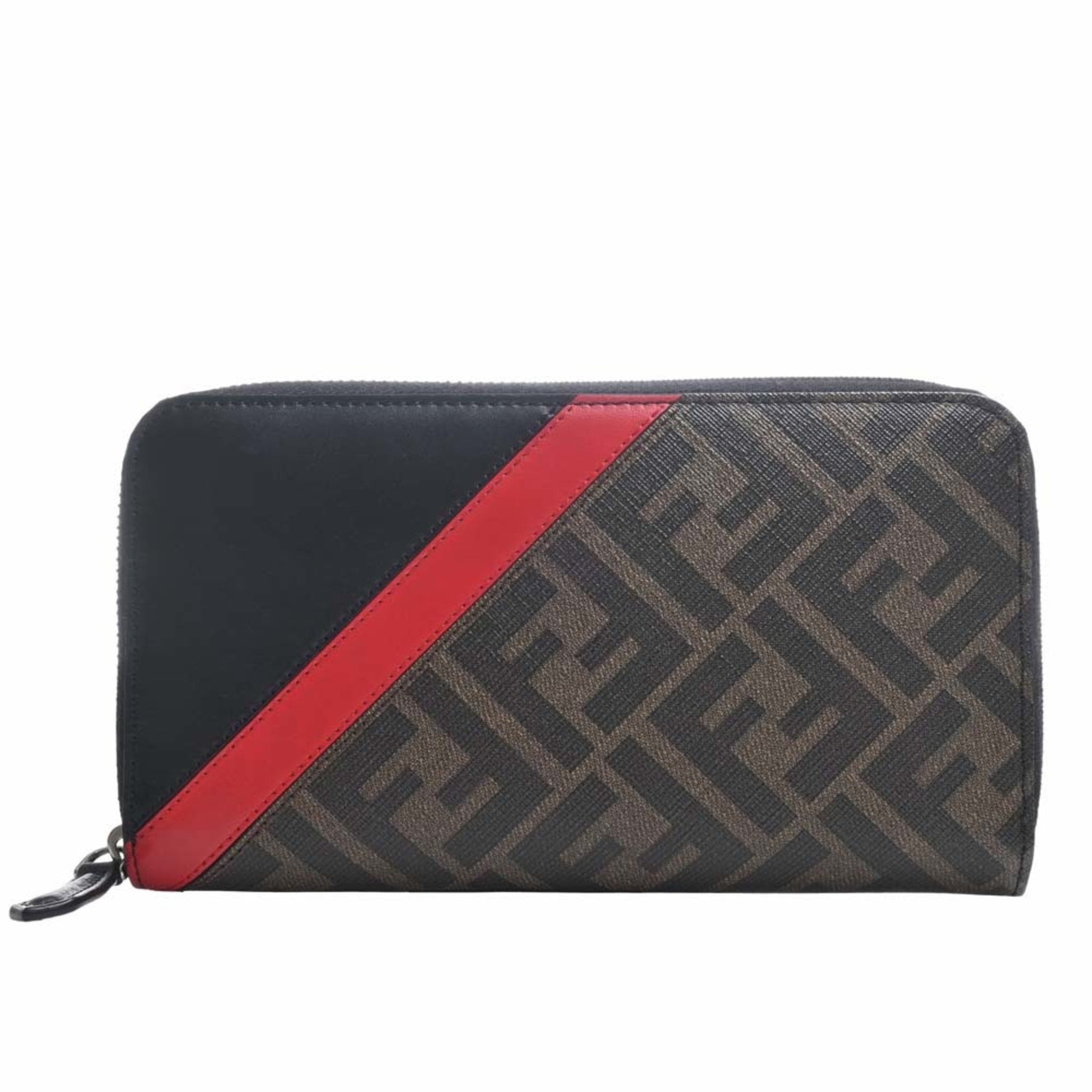 FENDI leather zucca pattern long wallet 7M0210 black brown red men's