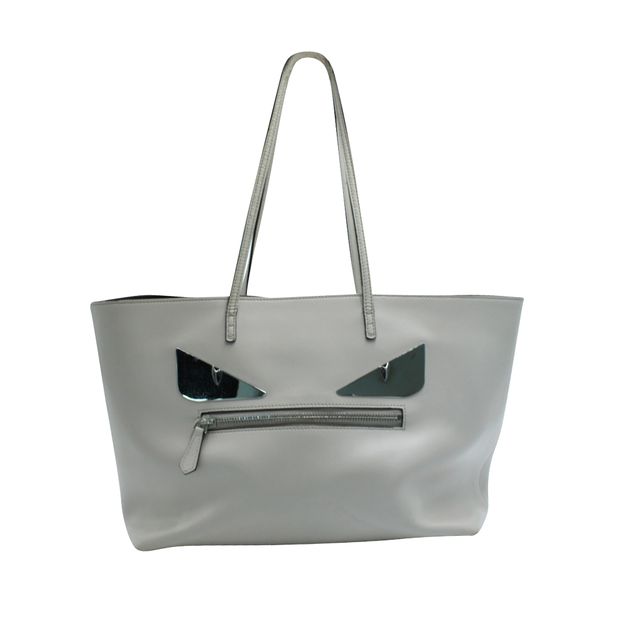 FENDI Light Grey Leather Tote With Mirror "Monster Eyes"
