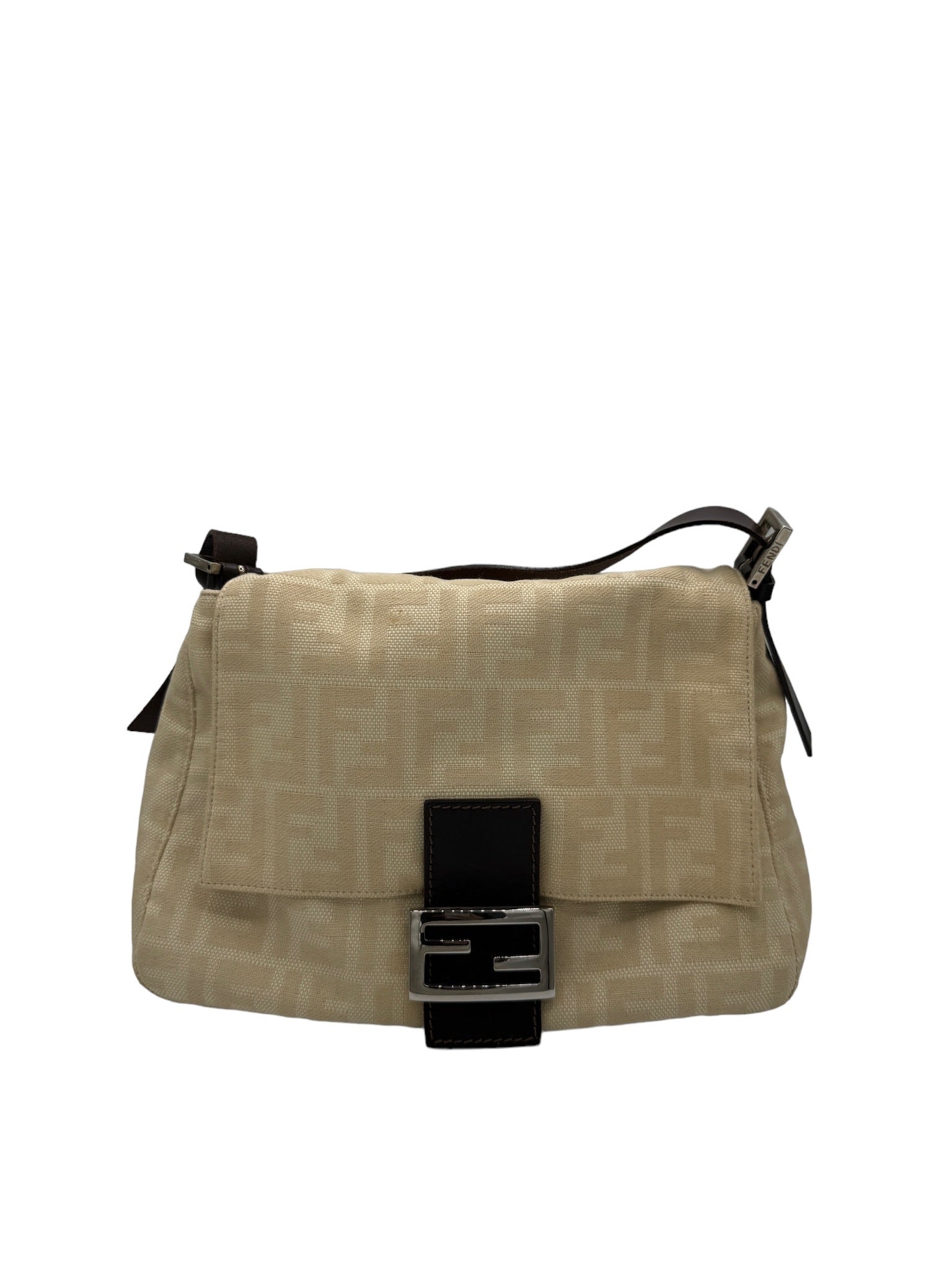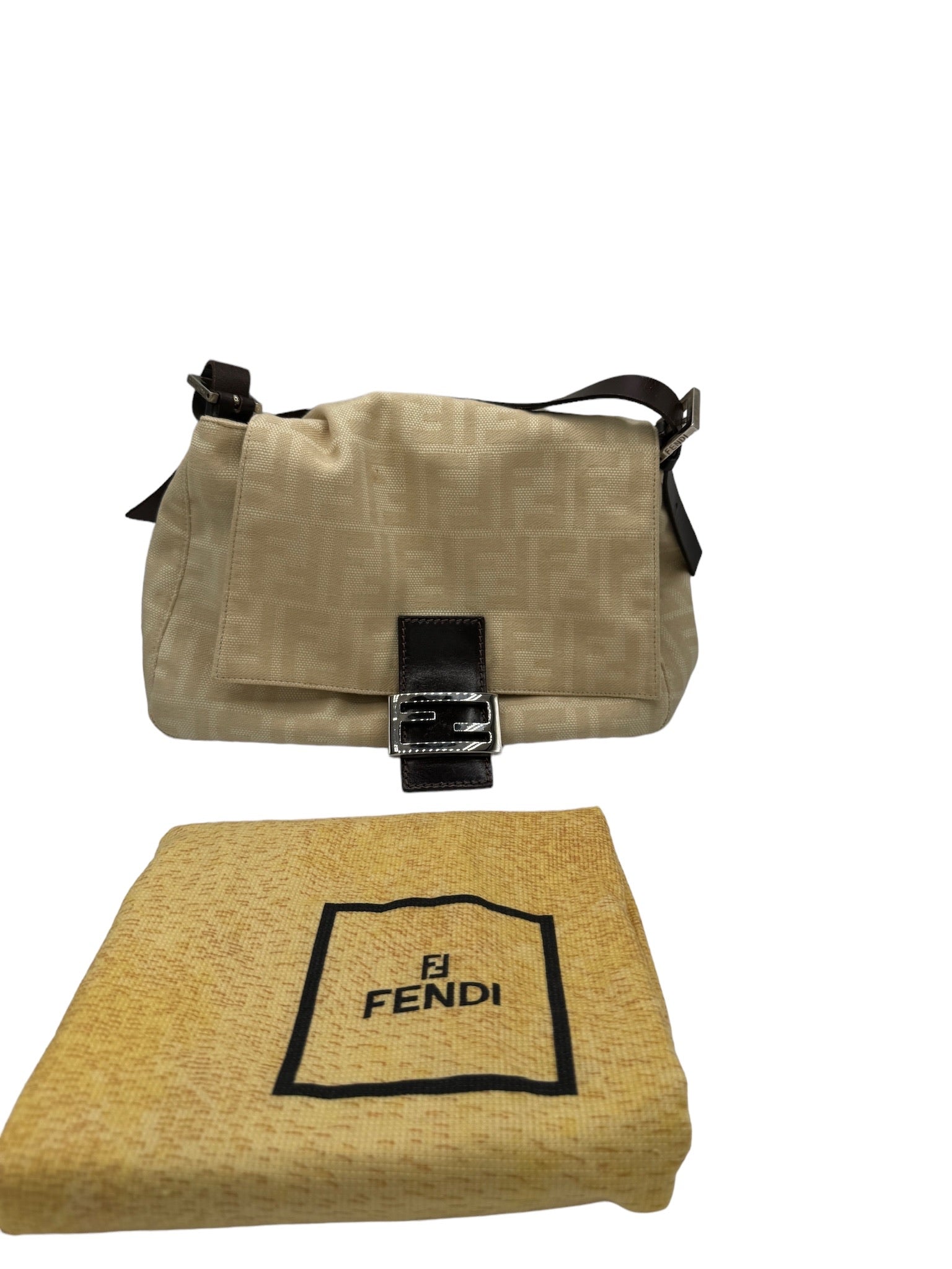 This FENDI Mama Bucket Handbag is the perfect addition to your wardrobe. It features a cream and dark brown jacquard leather design, which is both stylish and practical. The bag silhouette of this product falls under the category of Shoulder Bags, making it a versatile piece for your everyday use.