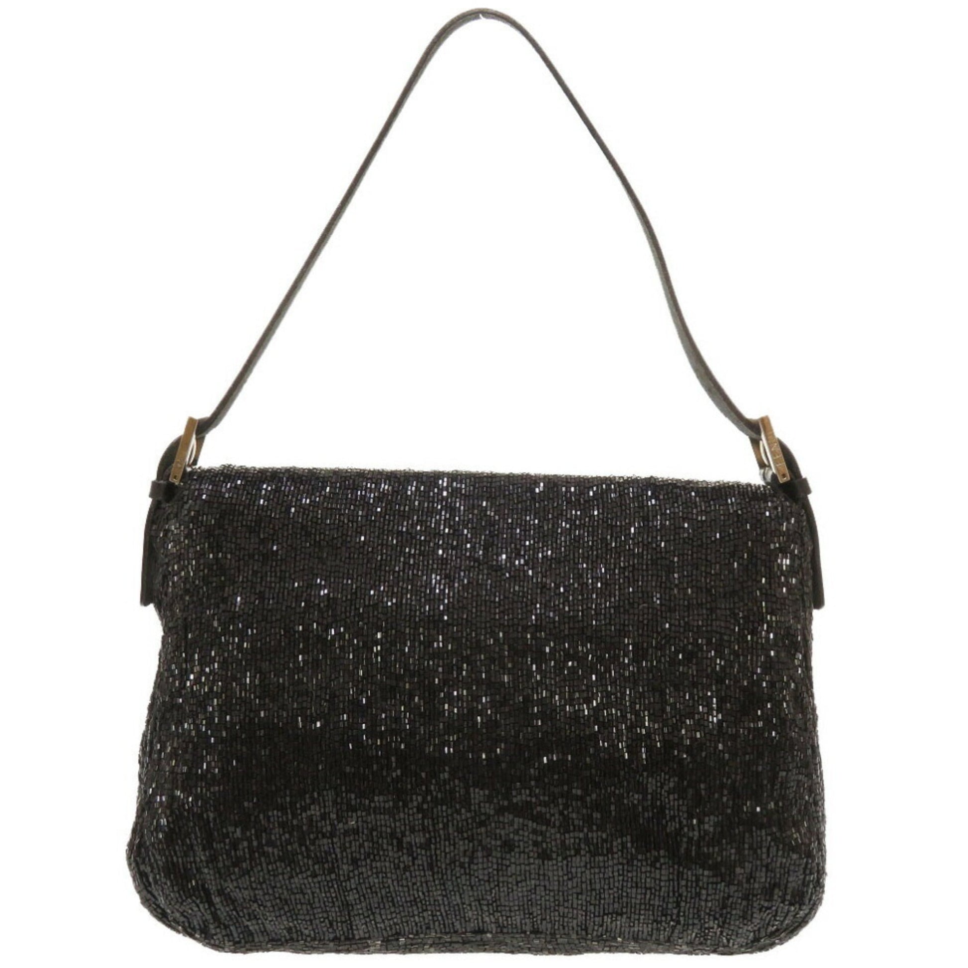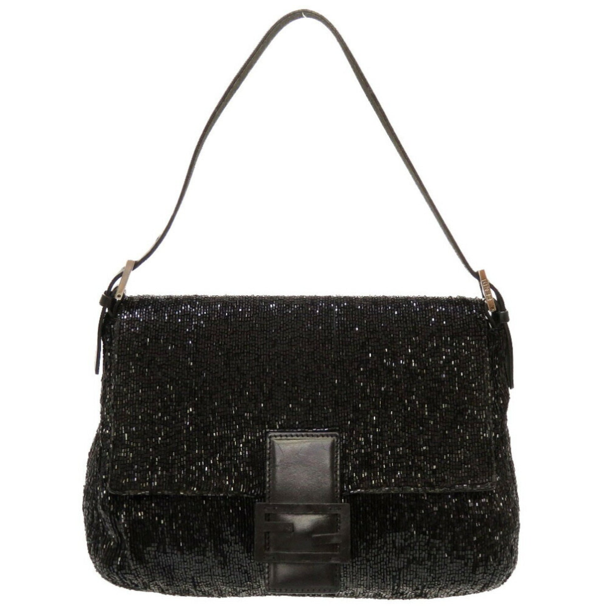 Fendi Mamma Bucket Beaded Leather Black Handbag Bag