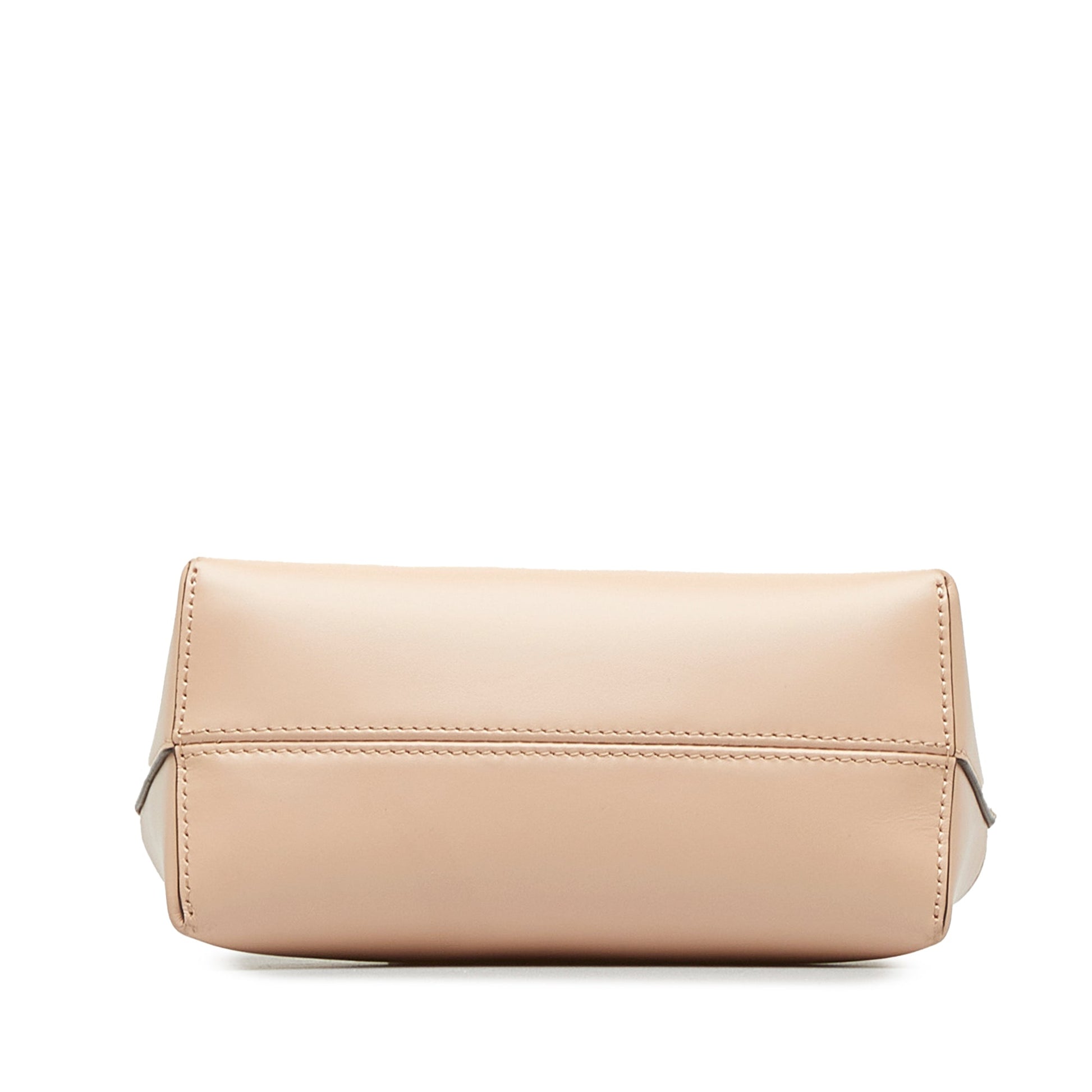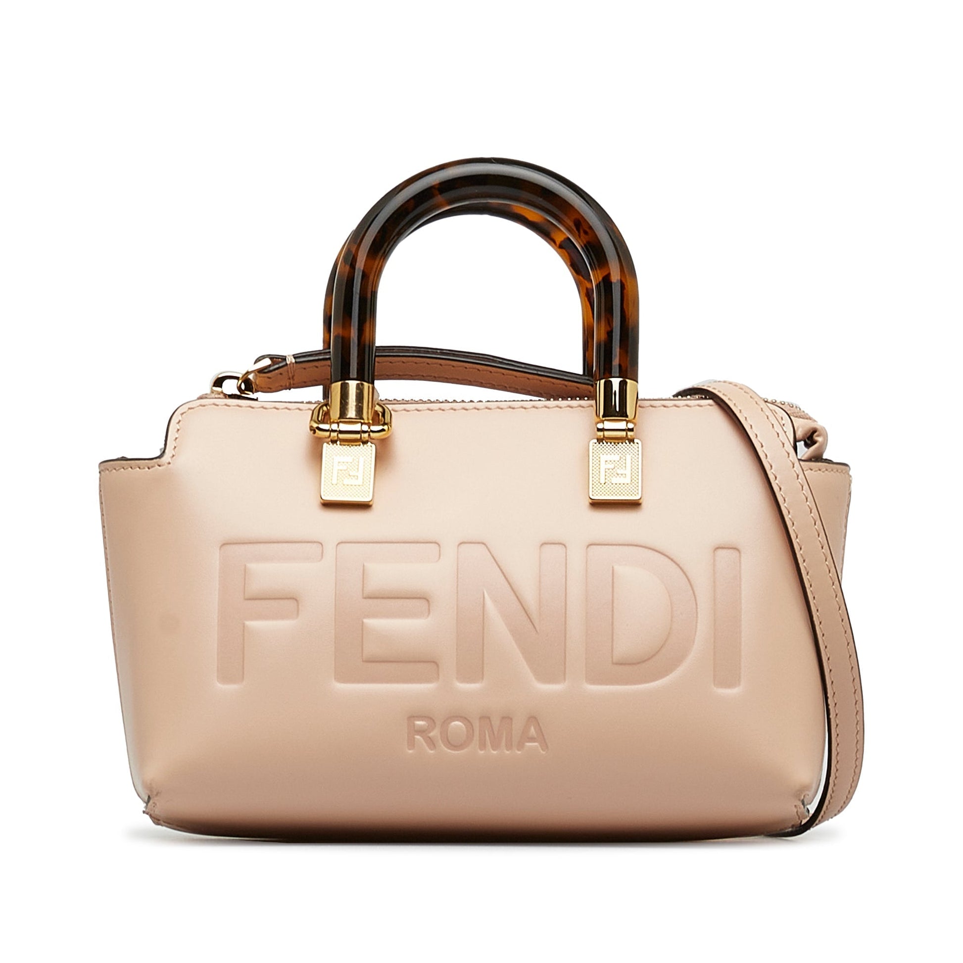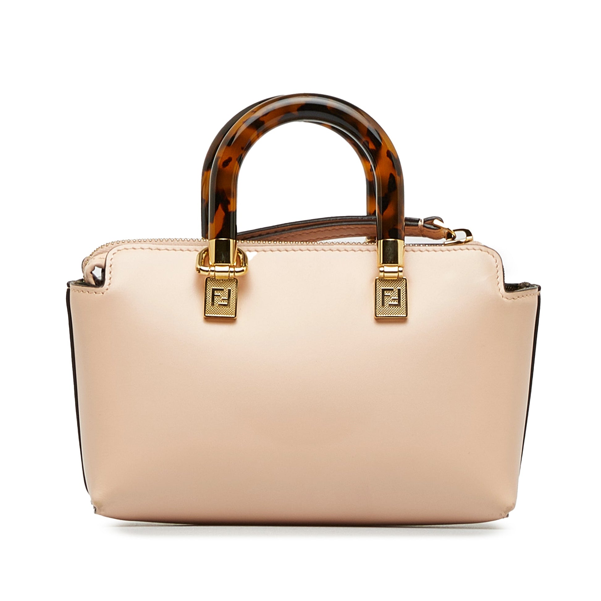 The Mini By The Way Tote features a leather body, rolled plexi handles, a detachable flat leather strap, a top zip closure, and an interior slip pocket. Comes with dust bag