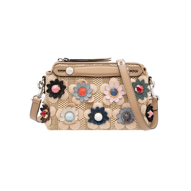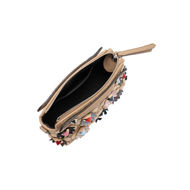 From the 2017 Collection Brown Raffia Floral Print Silver-Tone Hardware Leather Trim Single Shoulder Strap Crochet & Studded Accents Grosgrain Lining & Single Interior Pocket Zip Closure at Top Includes Keys & Clochette Dimensions: Height: 14 cm Width: 22 cm Depth: 9 cm Hand Drop: 3 shoulder drop: 65