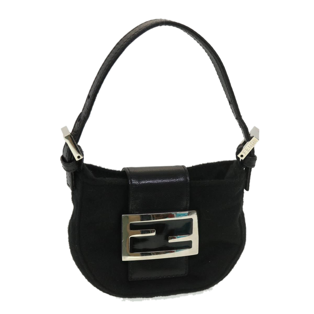 FENDI Mini Mamma Baguette Shoulder Bag Wool Black 39065