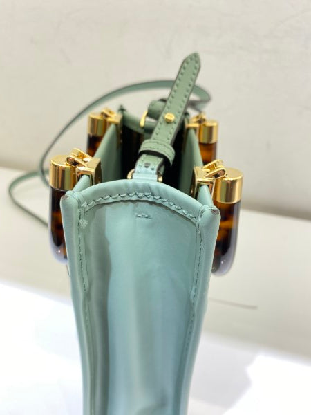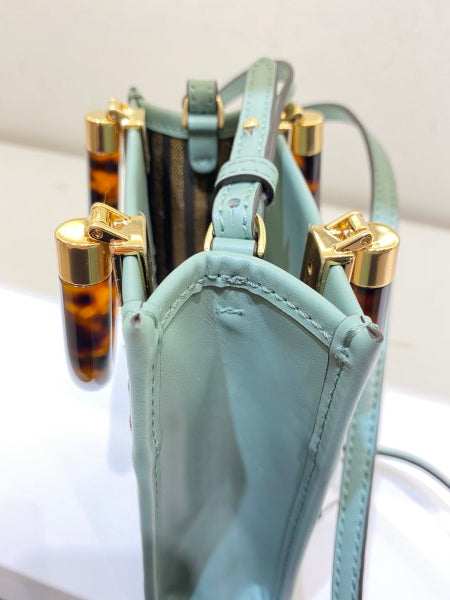 - Material: Mint Smooth Calf Leather with Stamped “FENDI ROMA” and Tortoiseshell Effect Plexiglass Handles