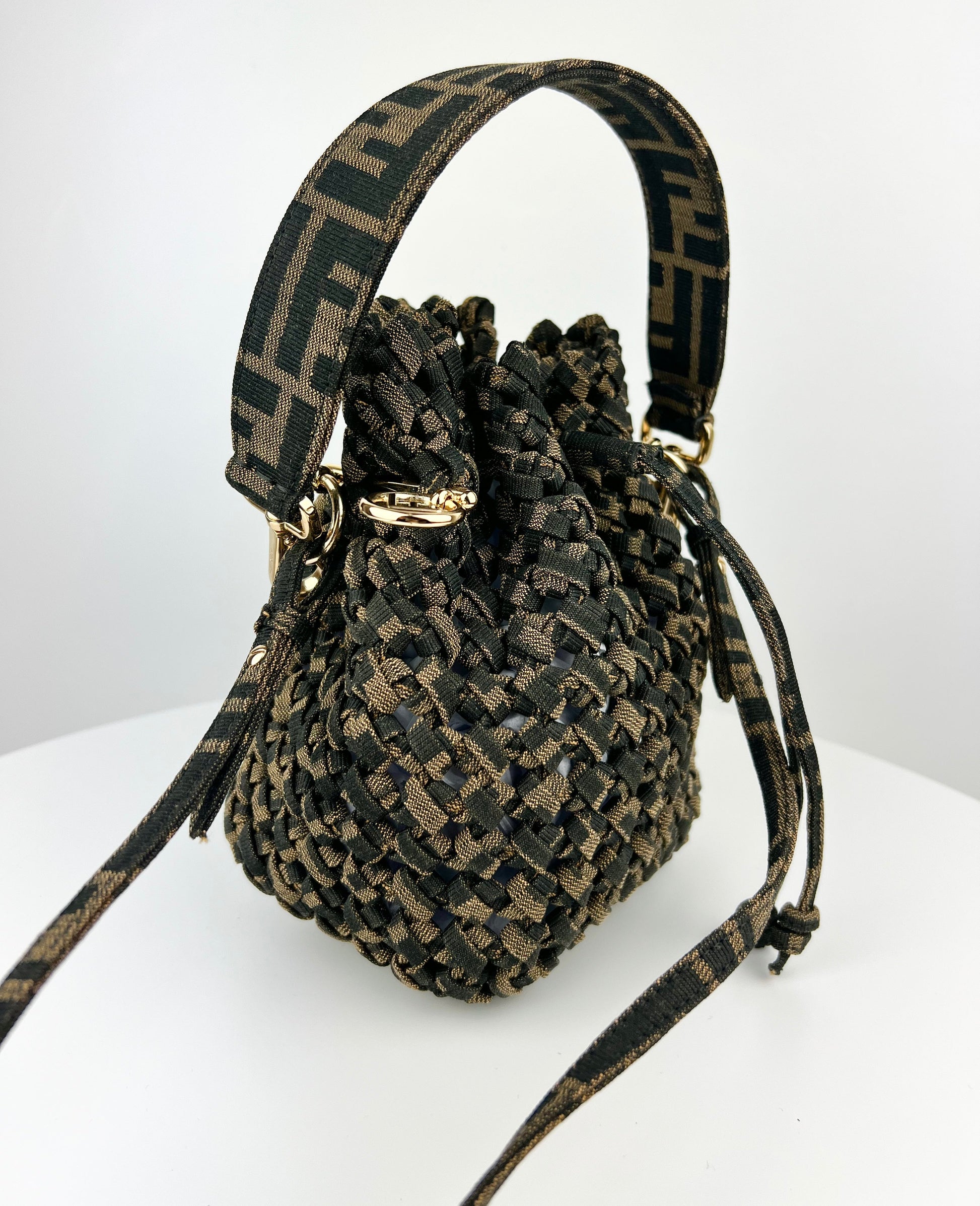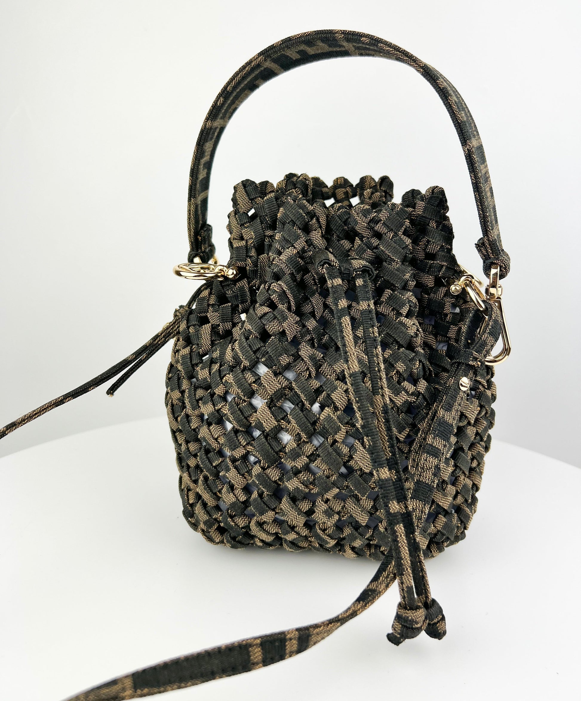 Fendi Mon Tresor bucket bag jacquard fabric interlace mini bag
