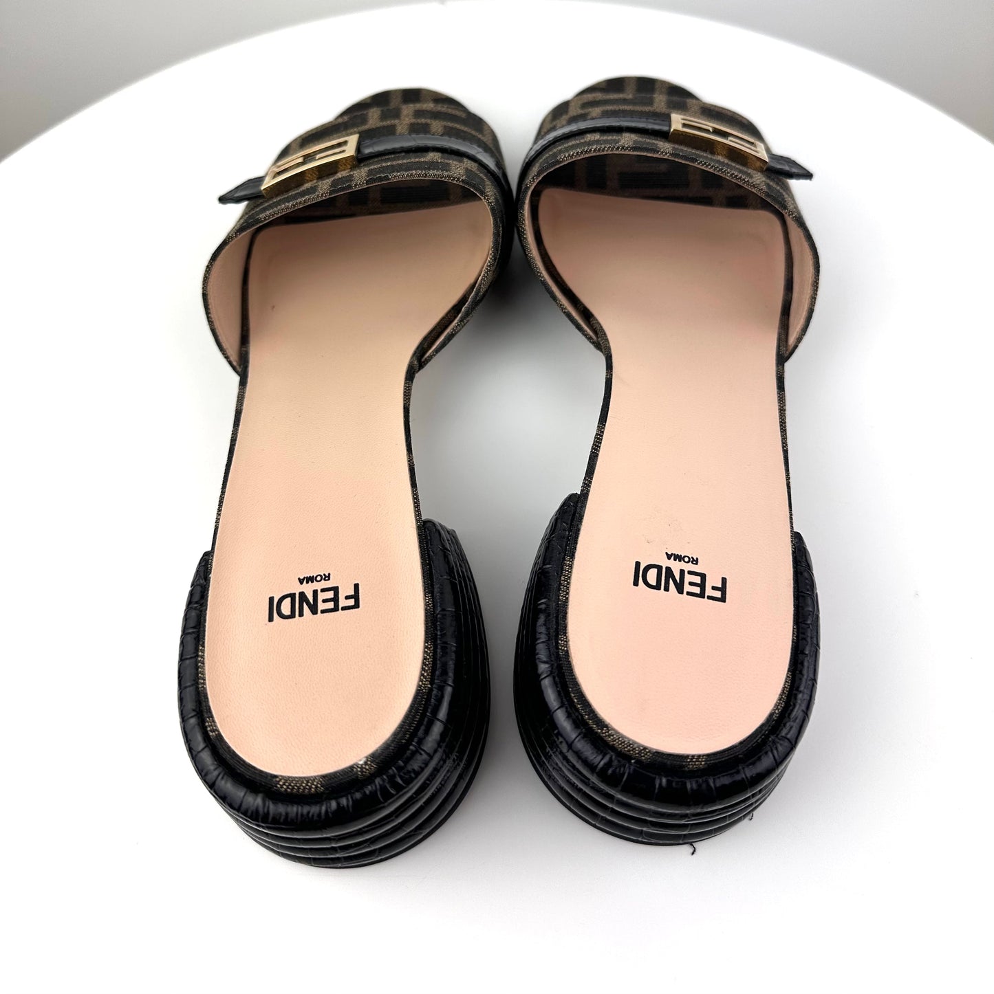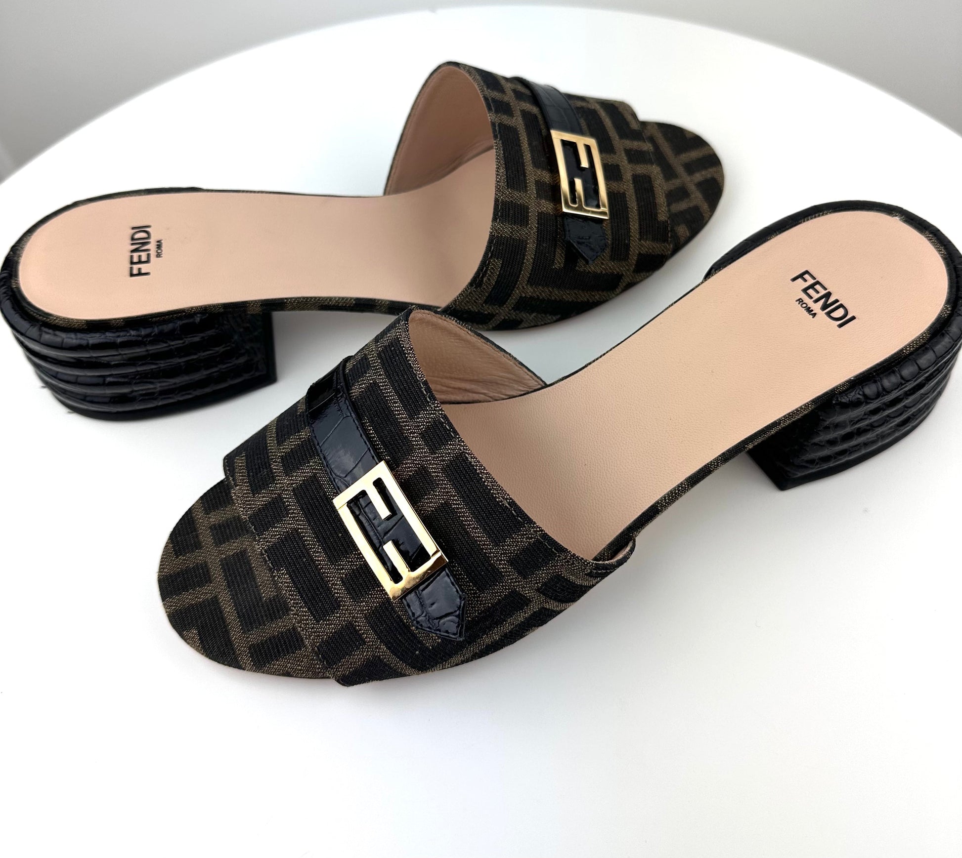Fendi Monogram Block Heel Sandals size 38.5 or . This product is in great condition with dust bag and box.
