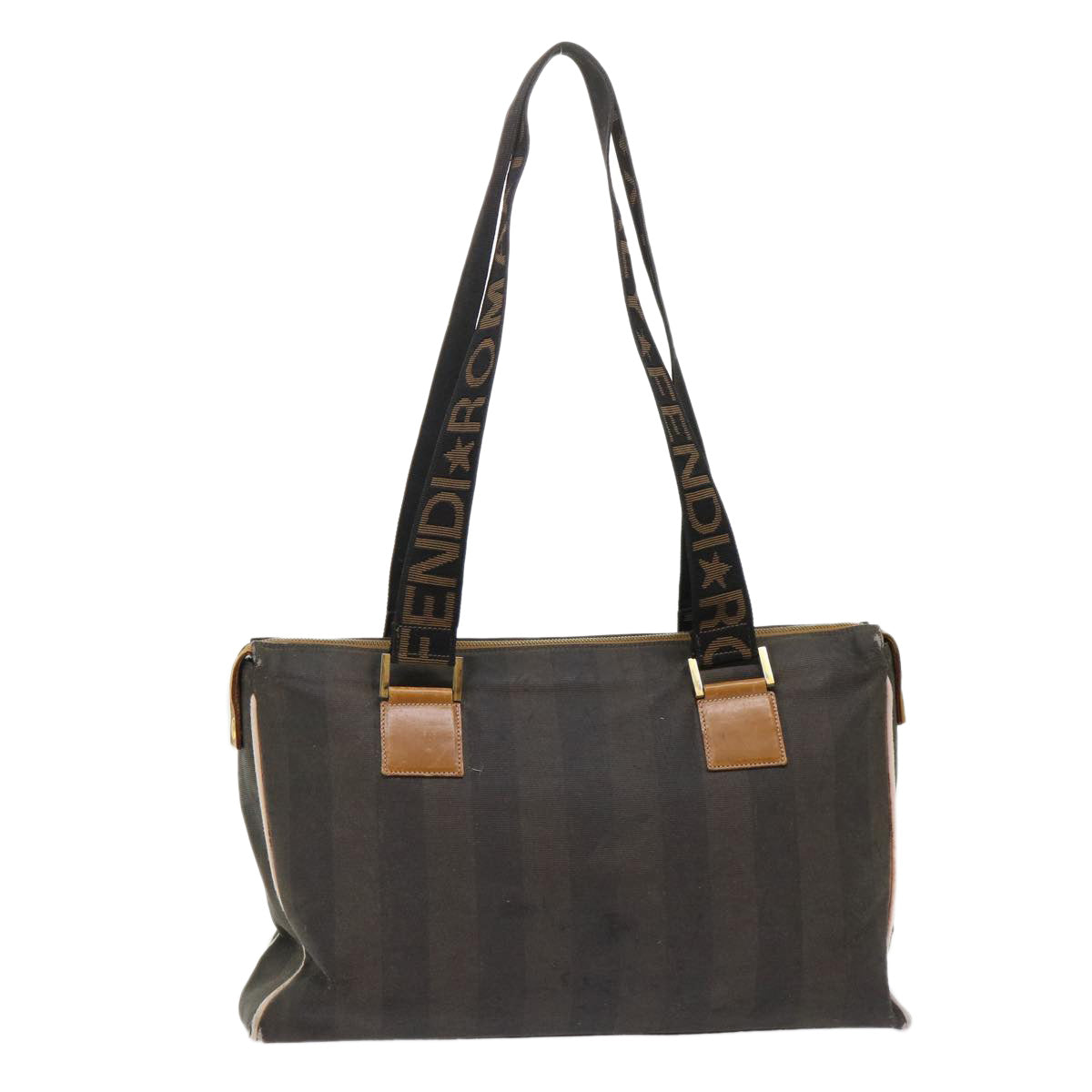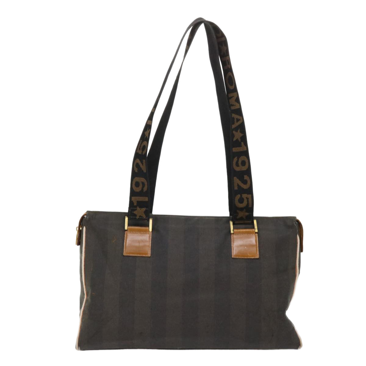 FENDI Pecan Canvas Shoulder Bag Black Brown Auth bs7192