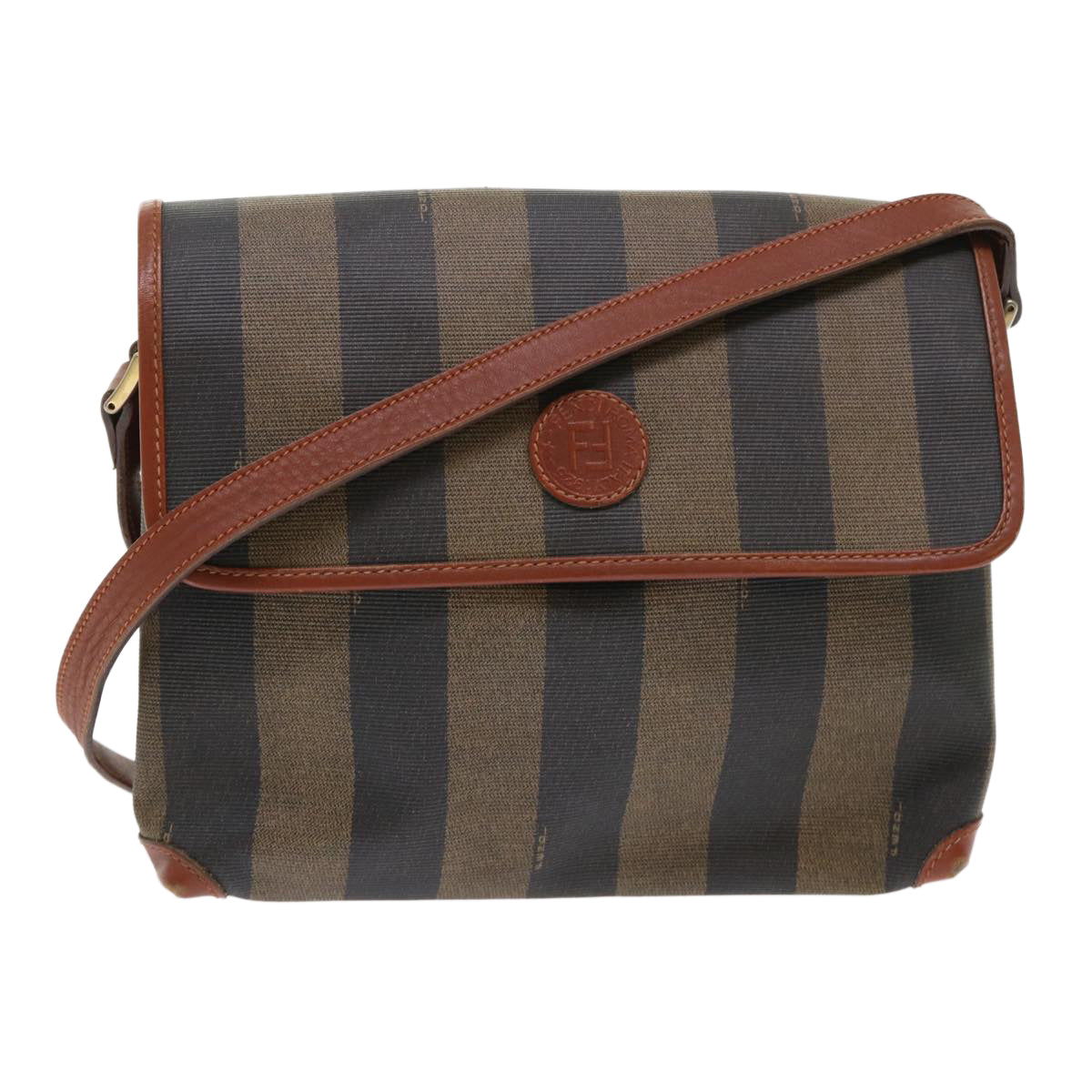 FENDI Pecan Canvas Shoulder Bag Black Brown Auth fm2527