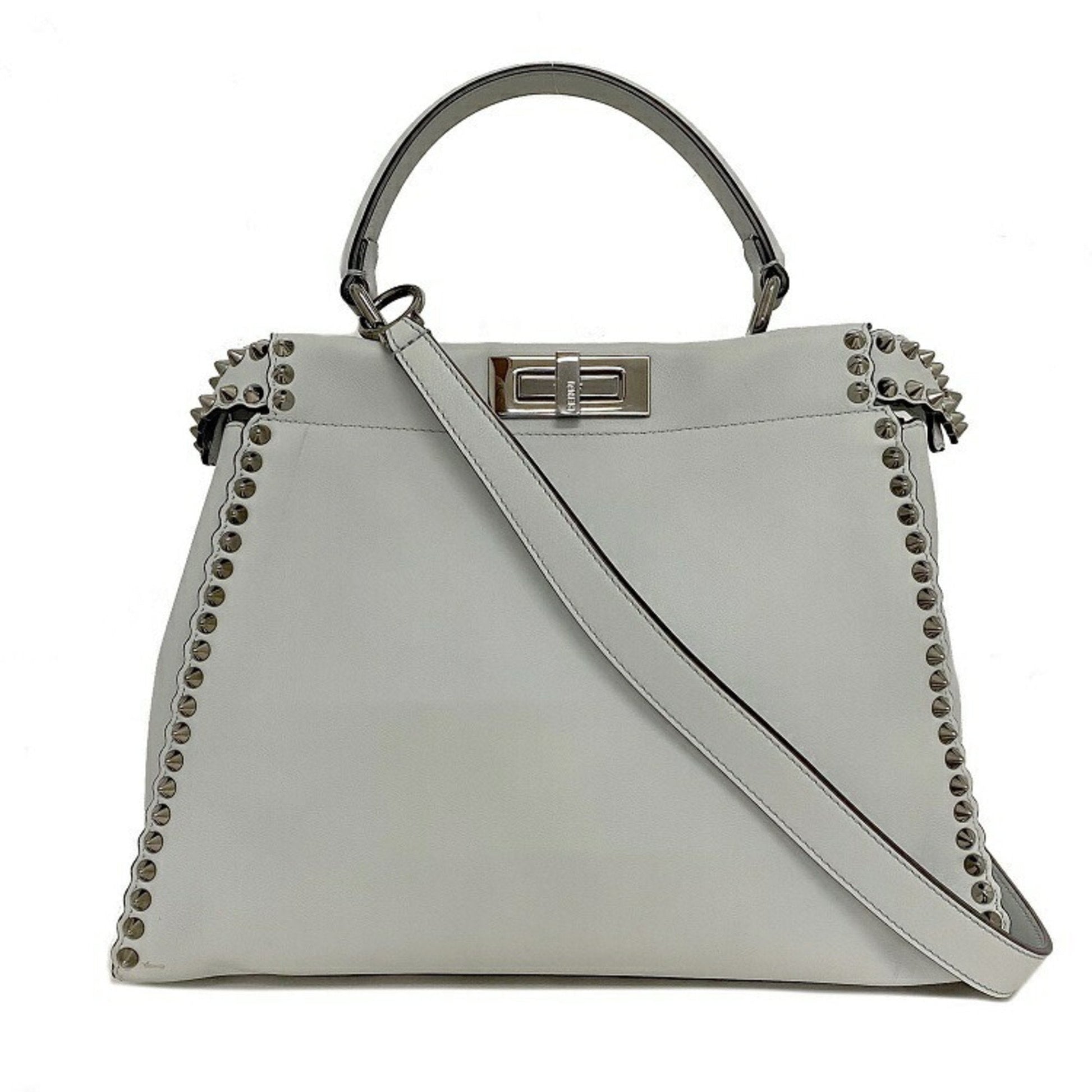 Fendi Peek-A-Boo Regular Gray 8BN290 A0K8 F136H 2WAY Bag Calf Leather FENDI Ladies Studs Icon Shoulder Handbag