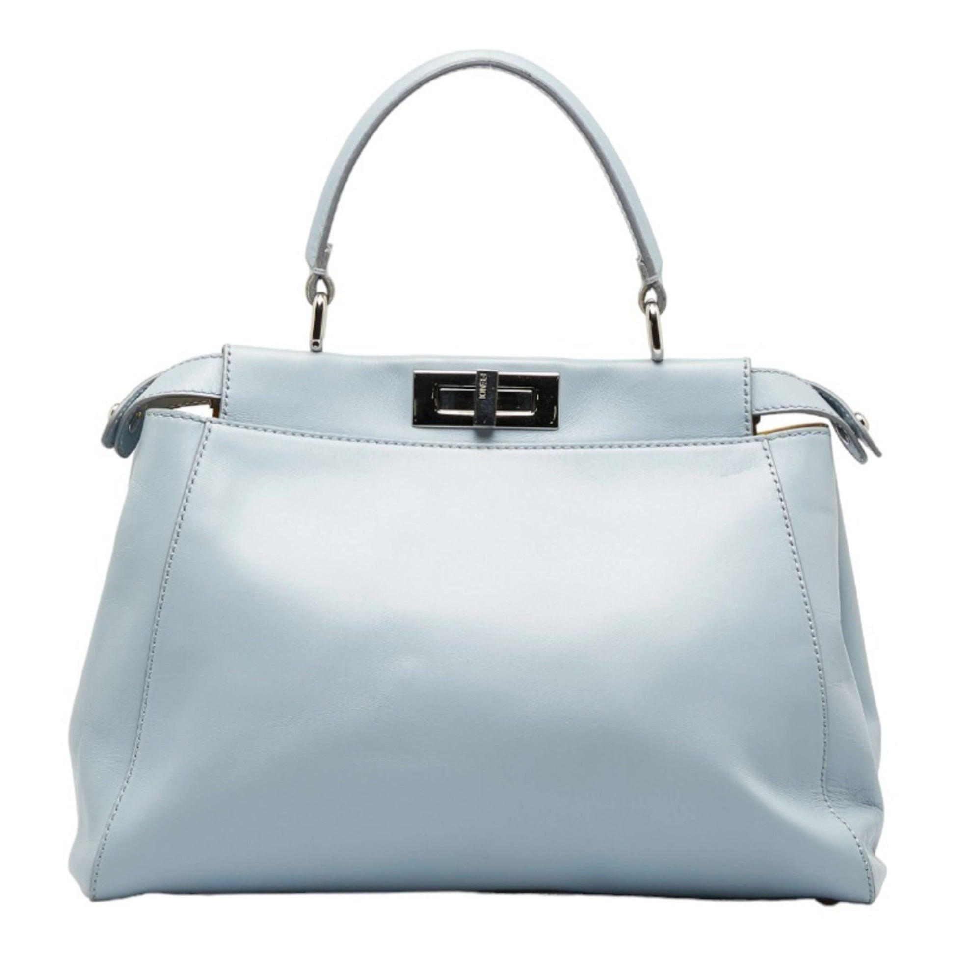FENDI Peekaboo Handbag Shoulder Bag Light Blue Leather Women's