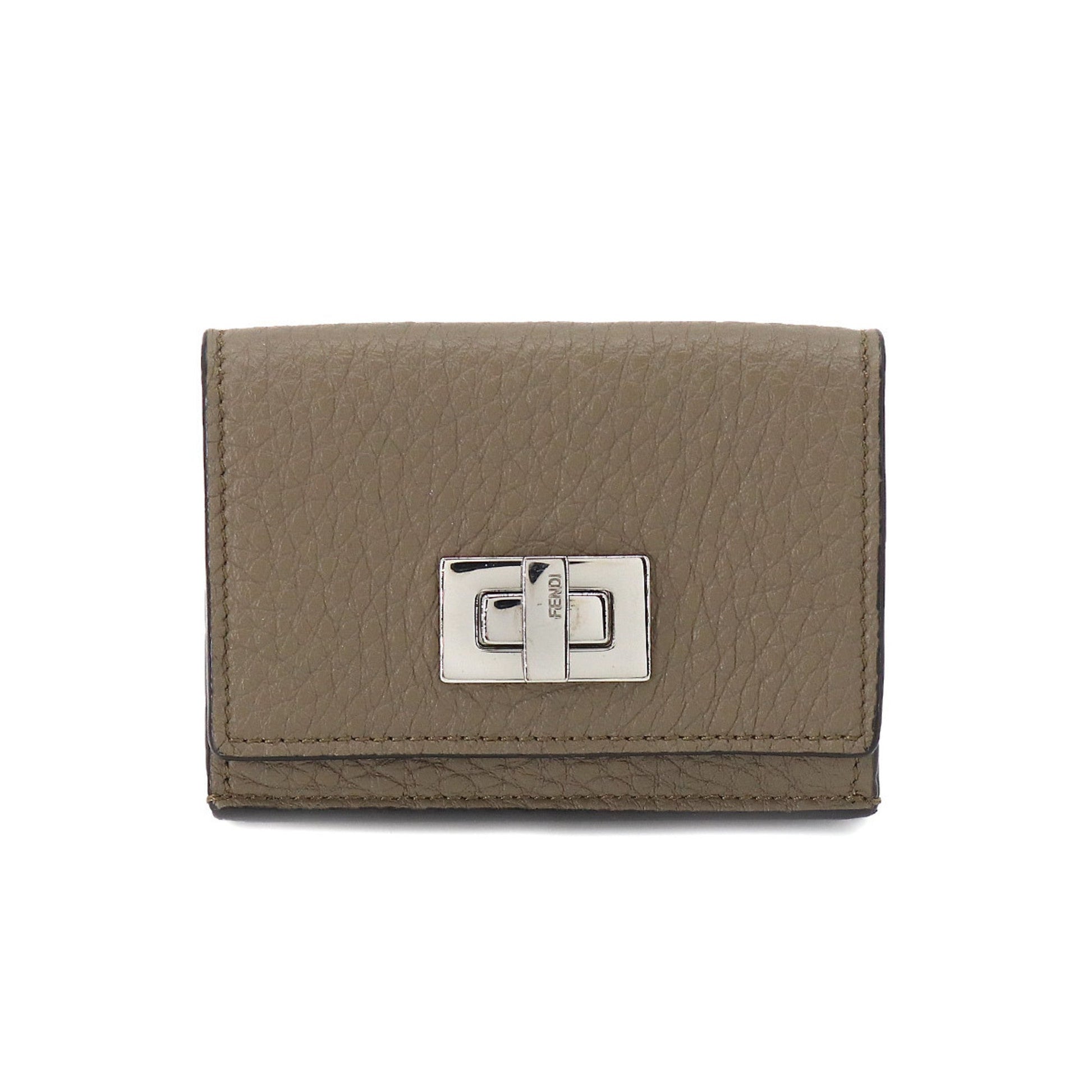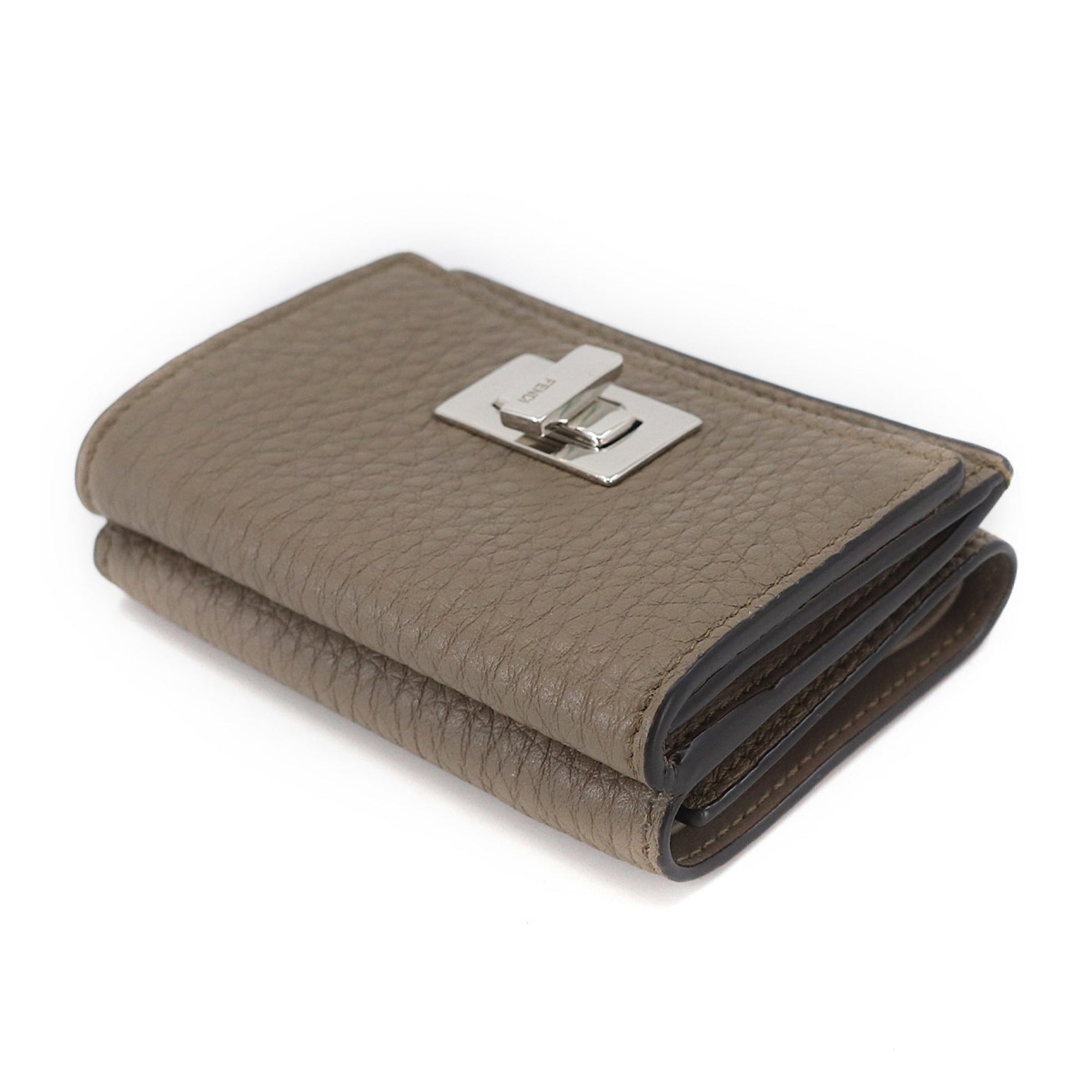 Fendi Peekaboo Trifold Wallet Leather Beige 8M0426 Silver Metal Fittings