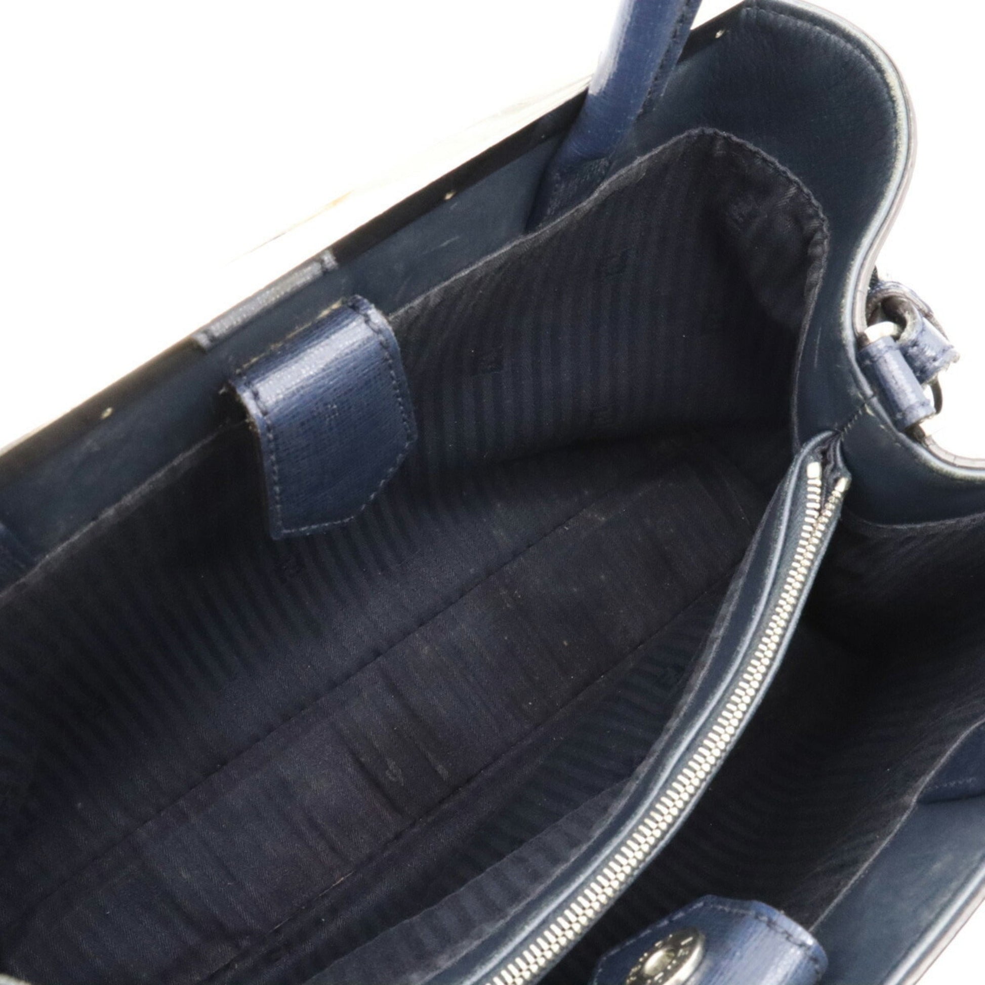 FENDI PETITE 2JOURS Handbag Tote Bag Shoulder Leather Navy 8BH253