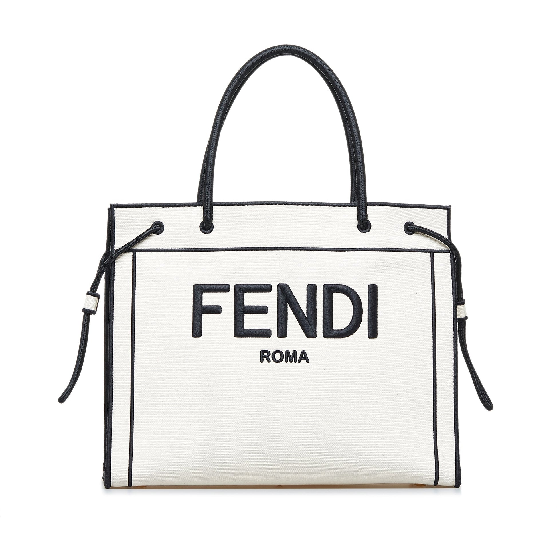 This tote bag features a canvas body, rolled handles, an open top, and an interior slip pocket. Comes with dust bag