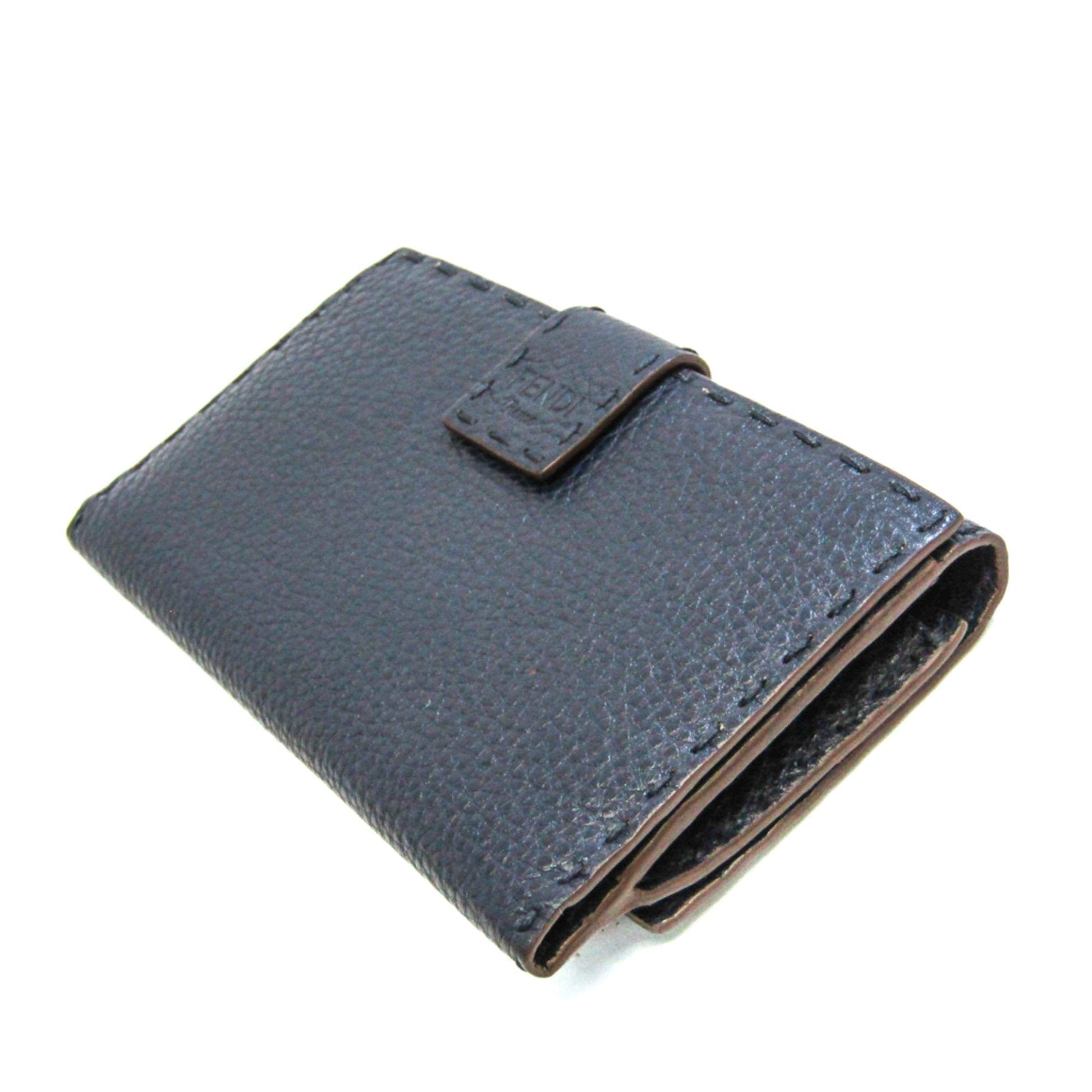 FENDI Selleria 8M3030 Men,Women Leather Long Wallet [tri-fold] Navy