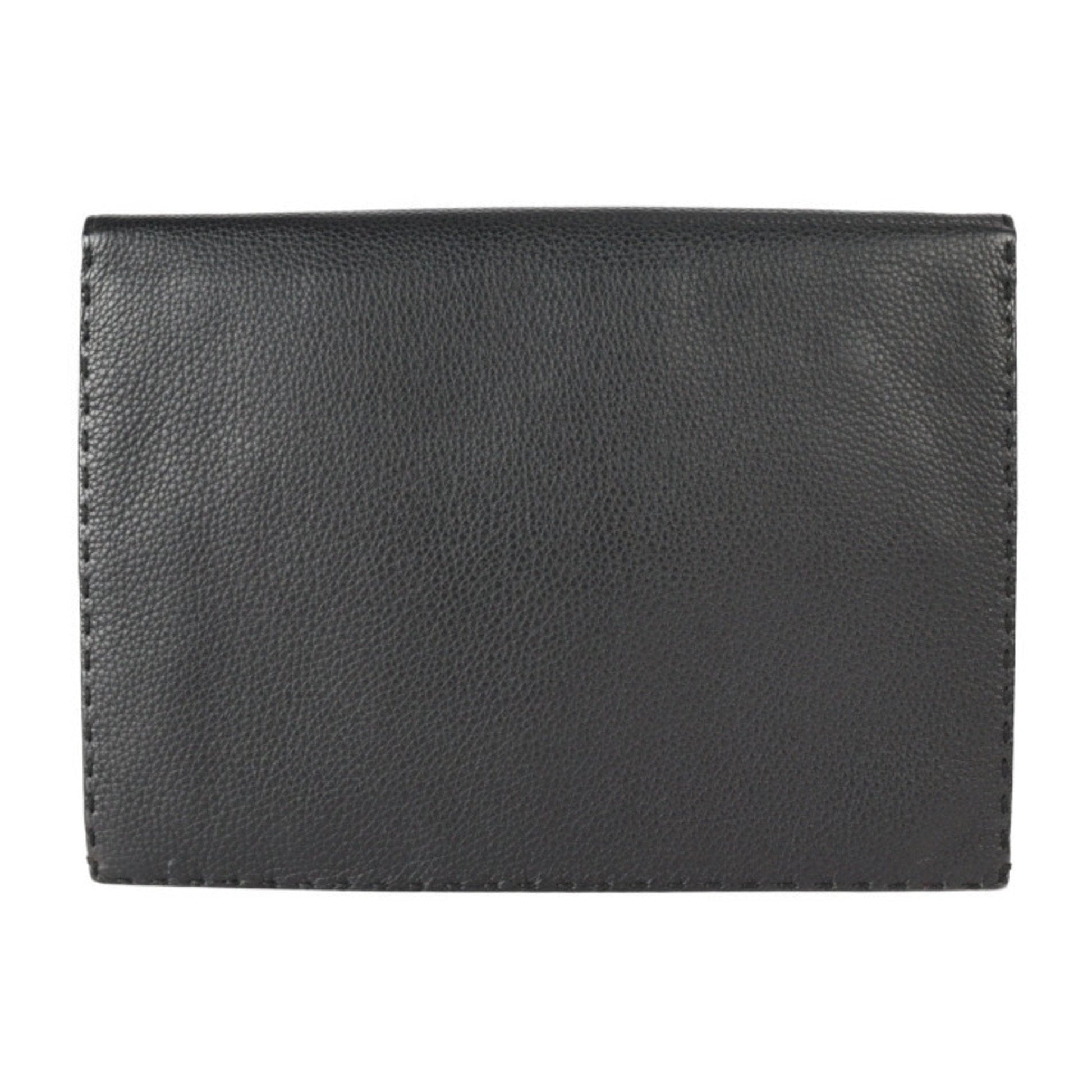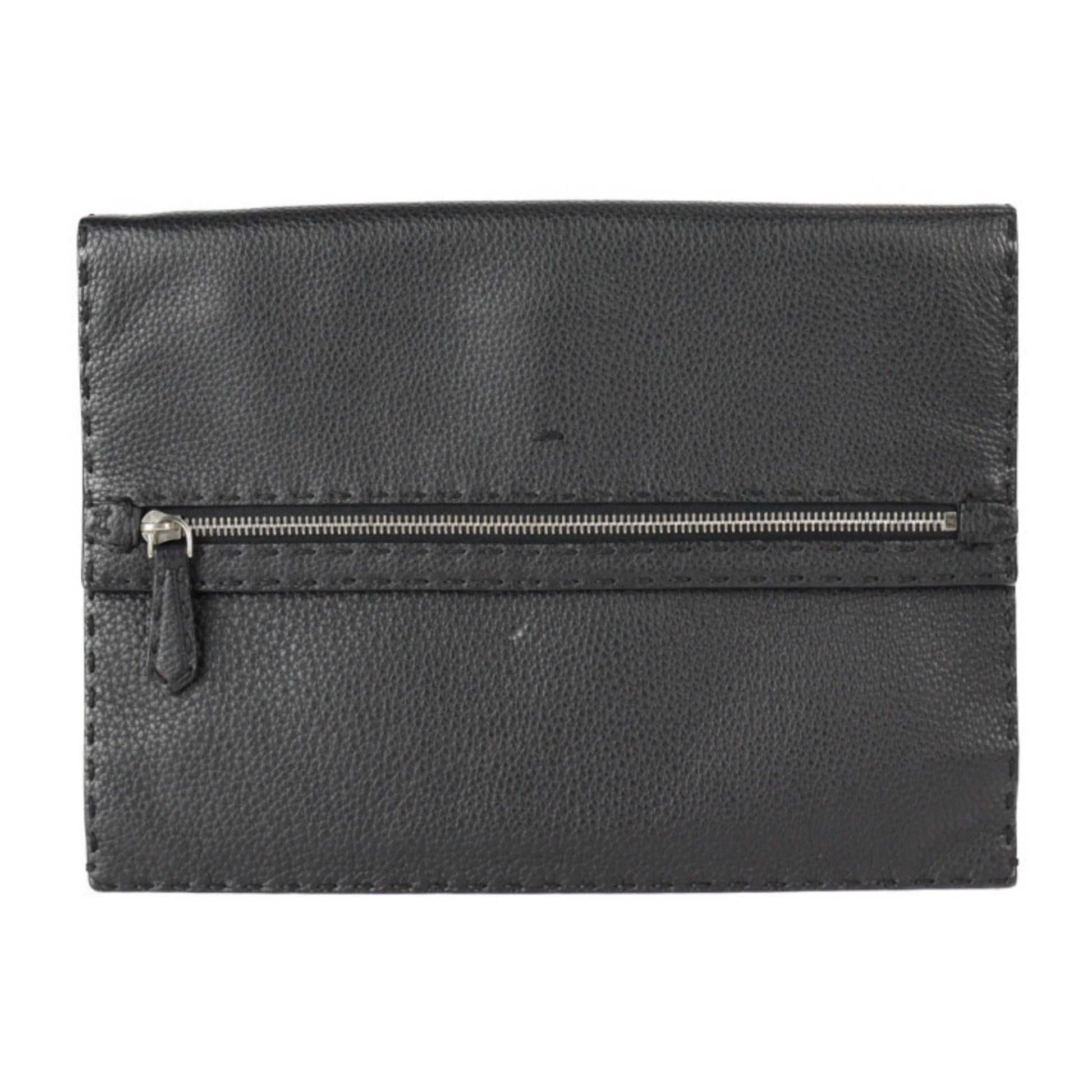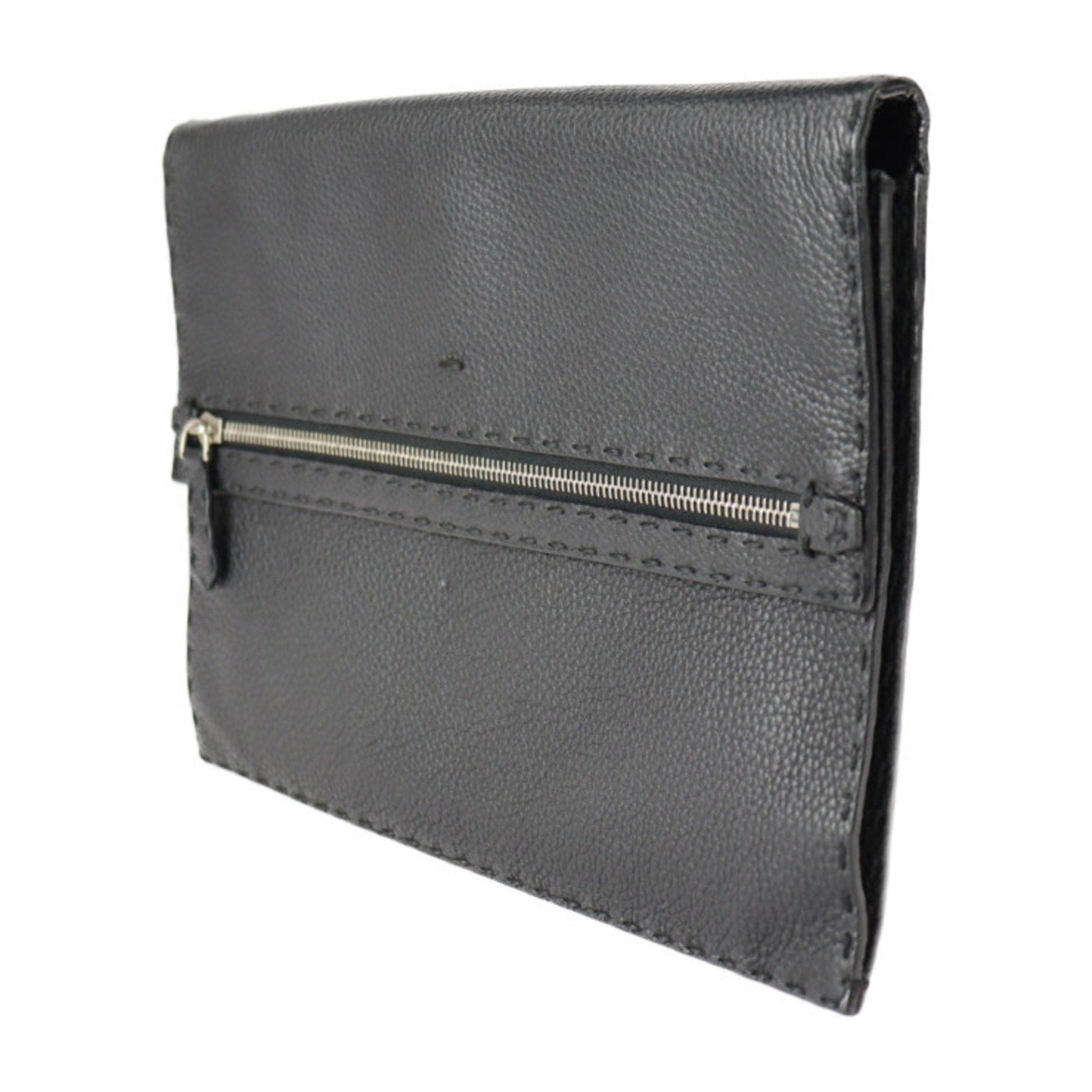 FENDI Selleria Clutch Bag 7VA376 Roman Leather Black Silver Hardware Wristlet Second Pouch
