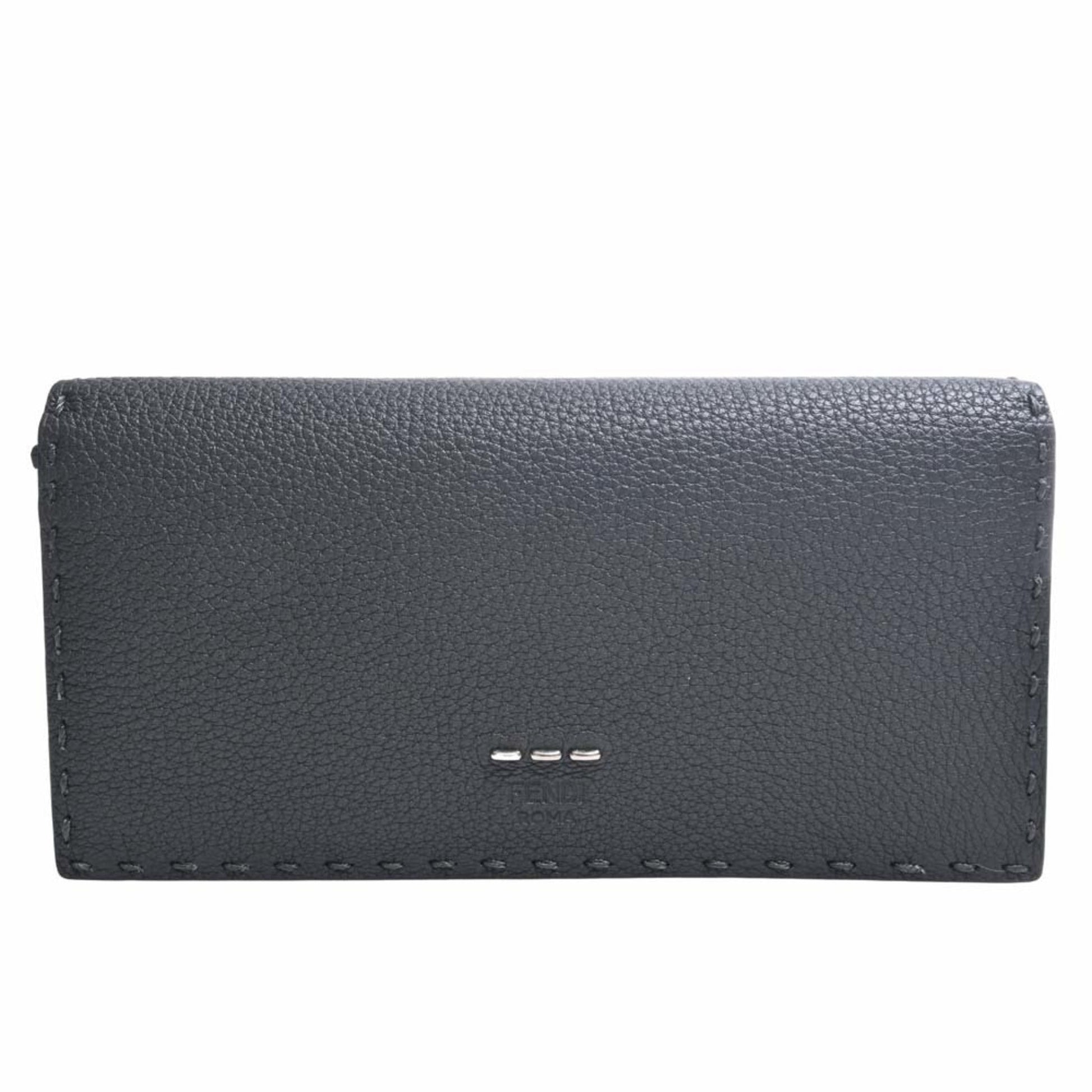 FENDI Selleria Leather Bifold Long Wallet 7M0186 Gray Men's