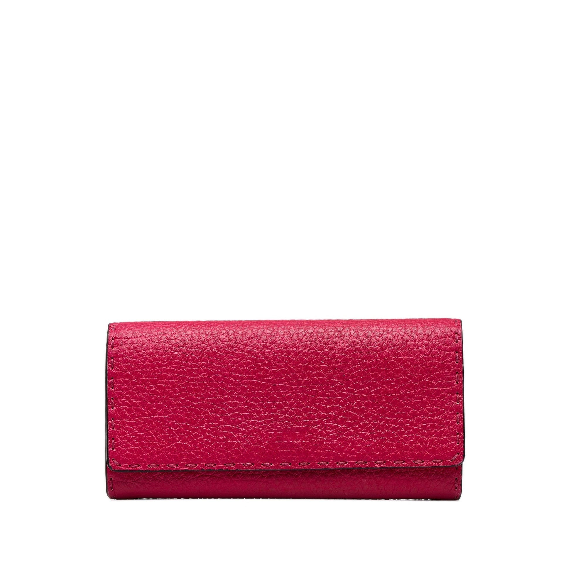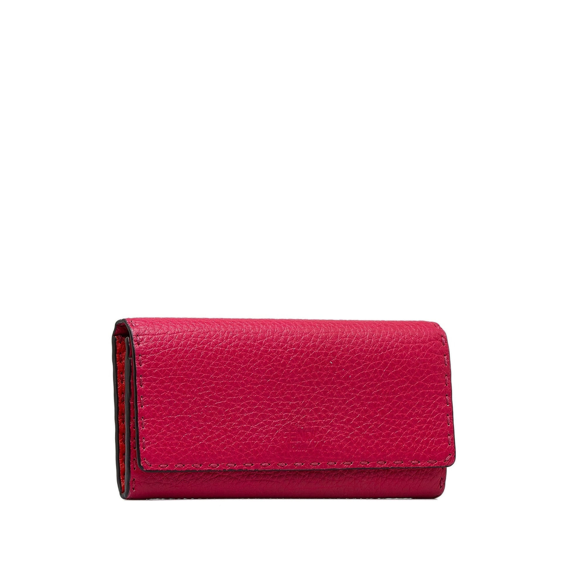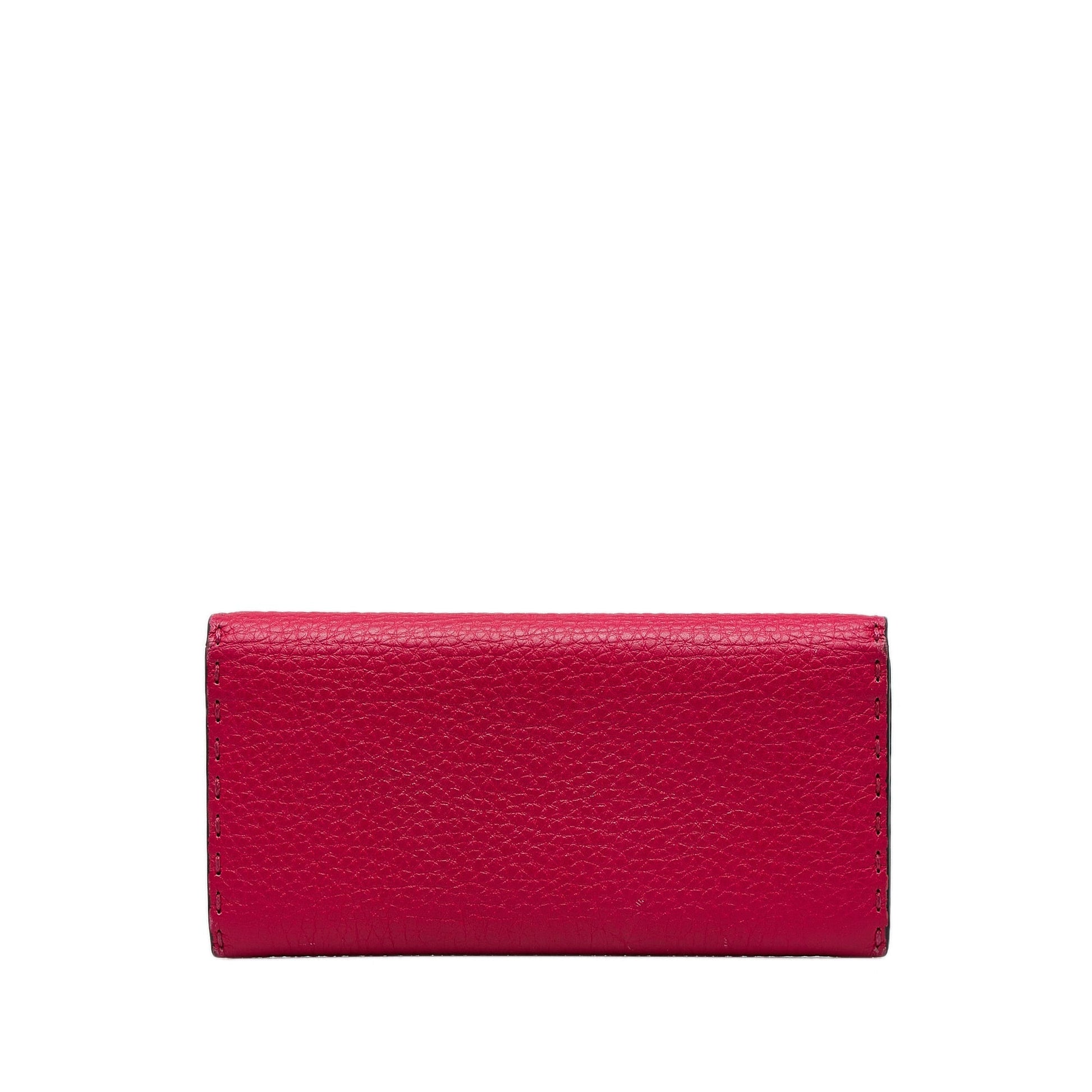This wallet features a leather body, a front flap with snap button closure, and an interior slip pockets.