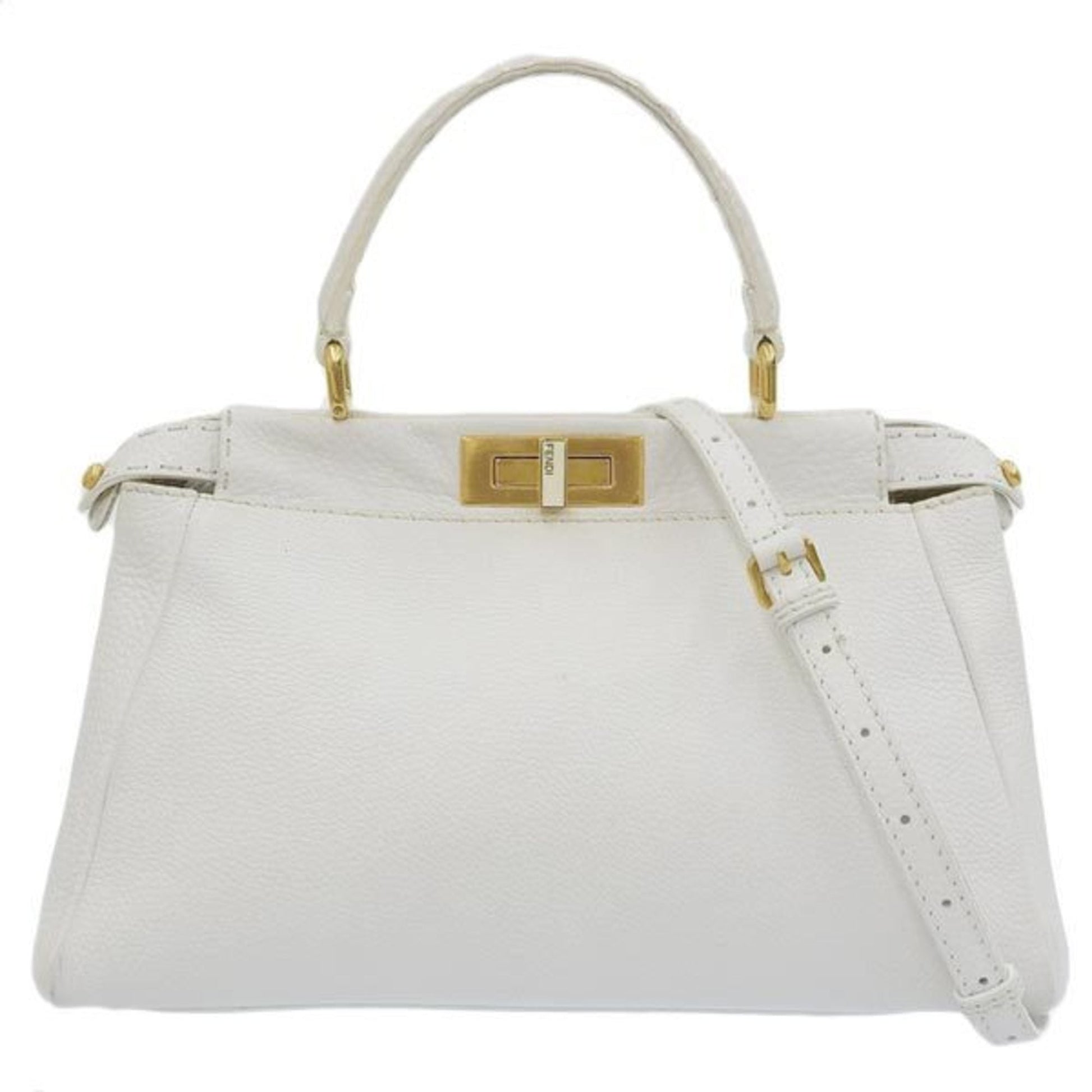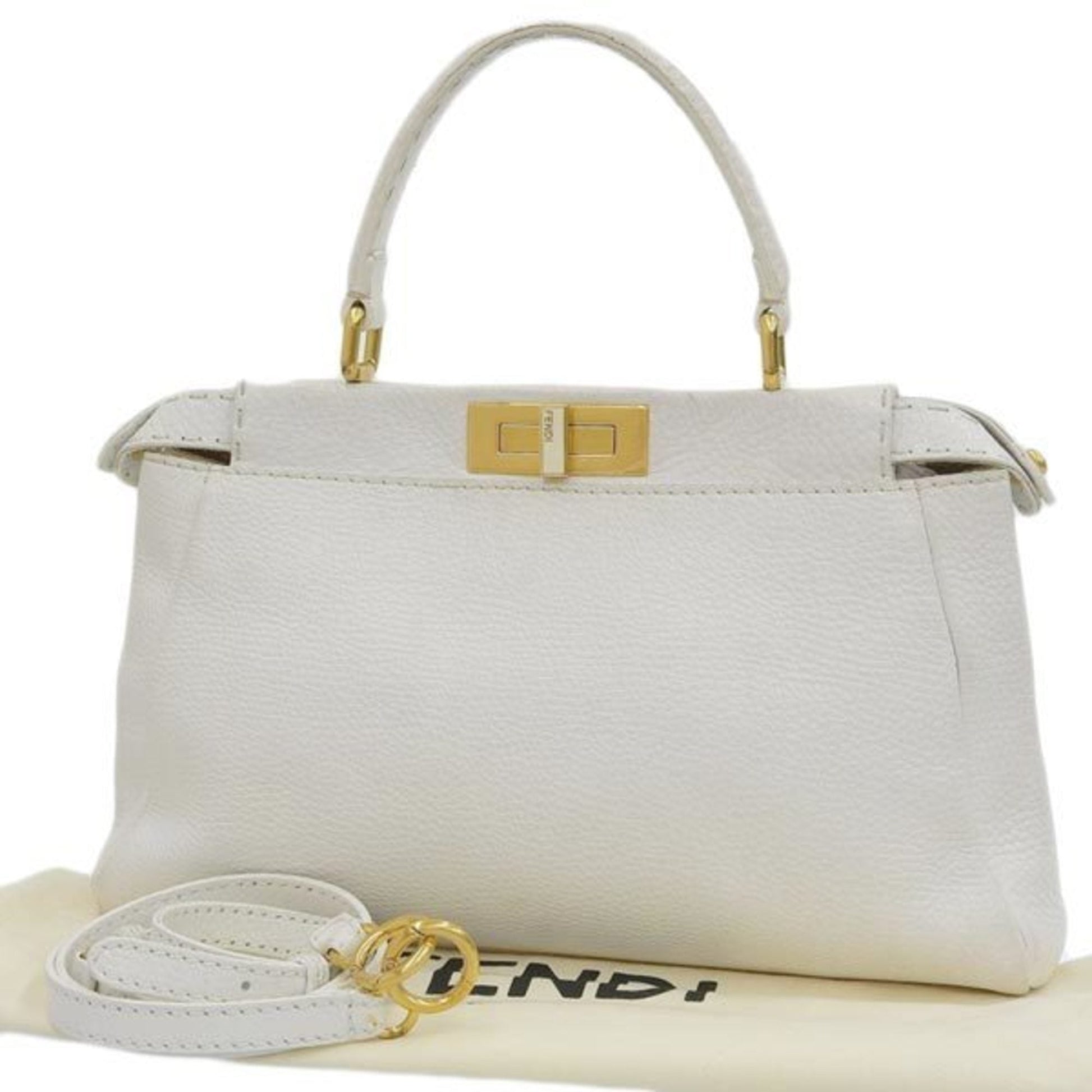 FENDI Selleria Leather Peekaboo Handbag 8BN211 White Ladies