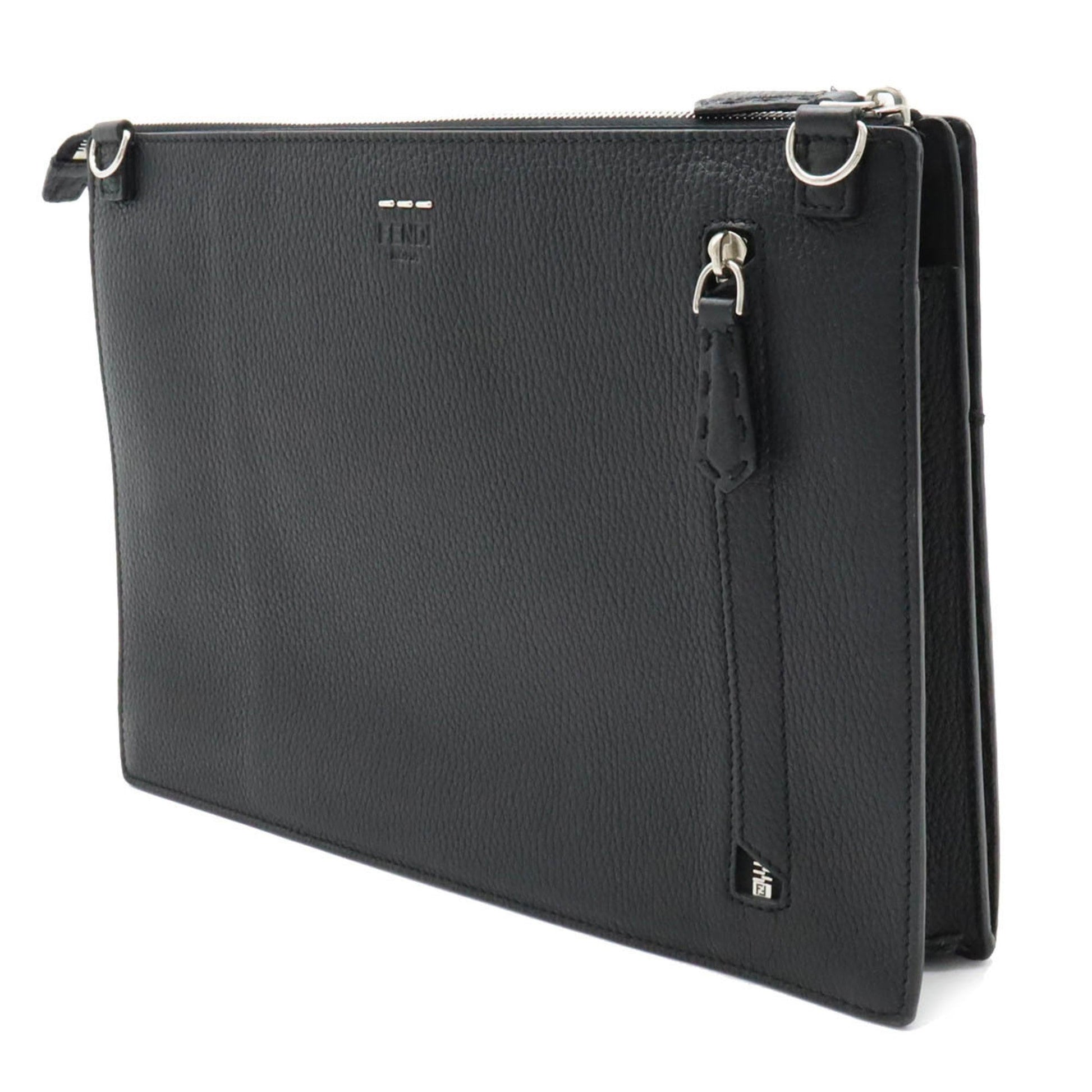 FENDI Selleria Stitch FF Clutch Bag Second Handbag Leather Black 7V99