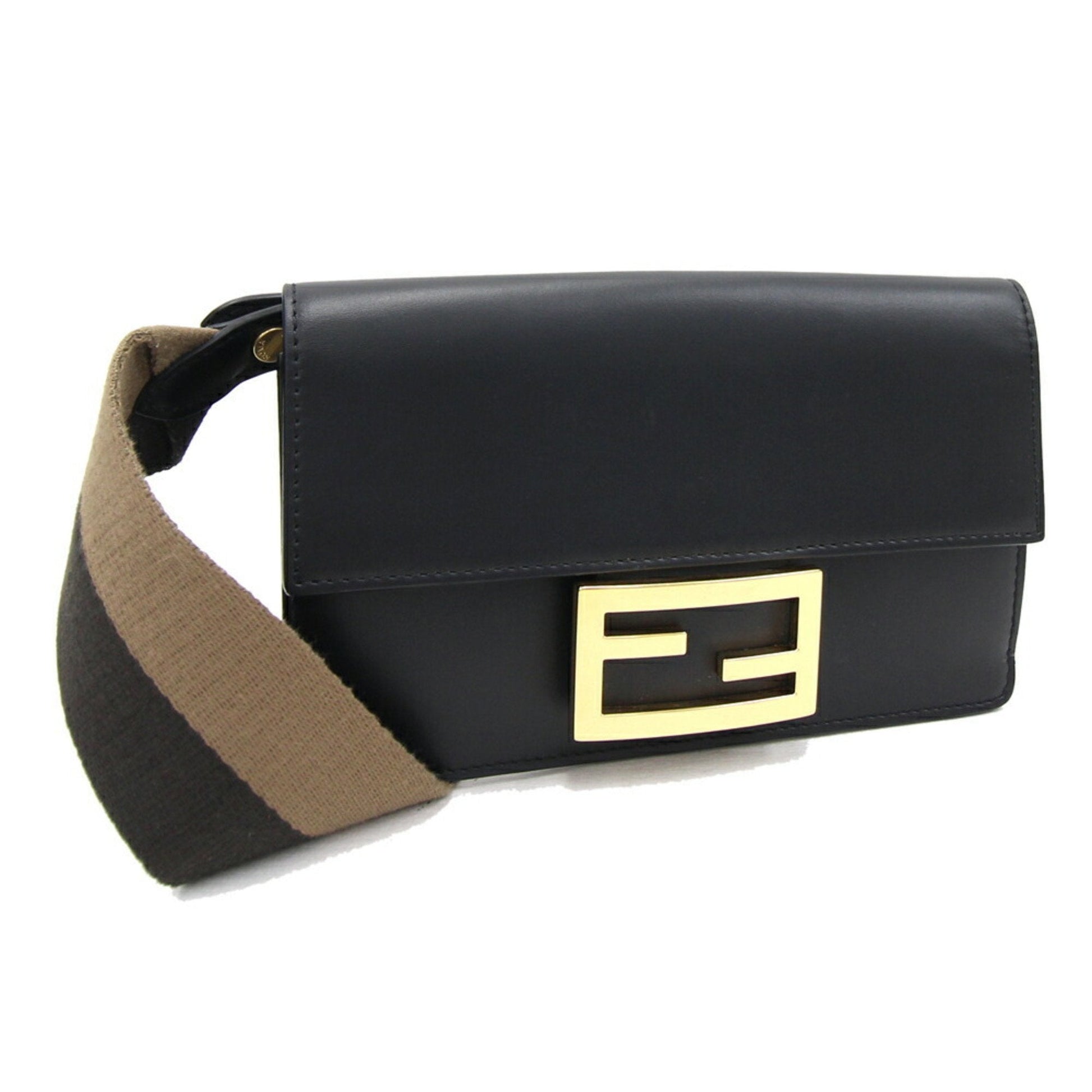 FENDI shoulder bag flat baguette 8BS039 black leather ladies FF