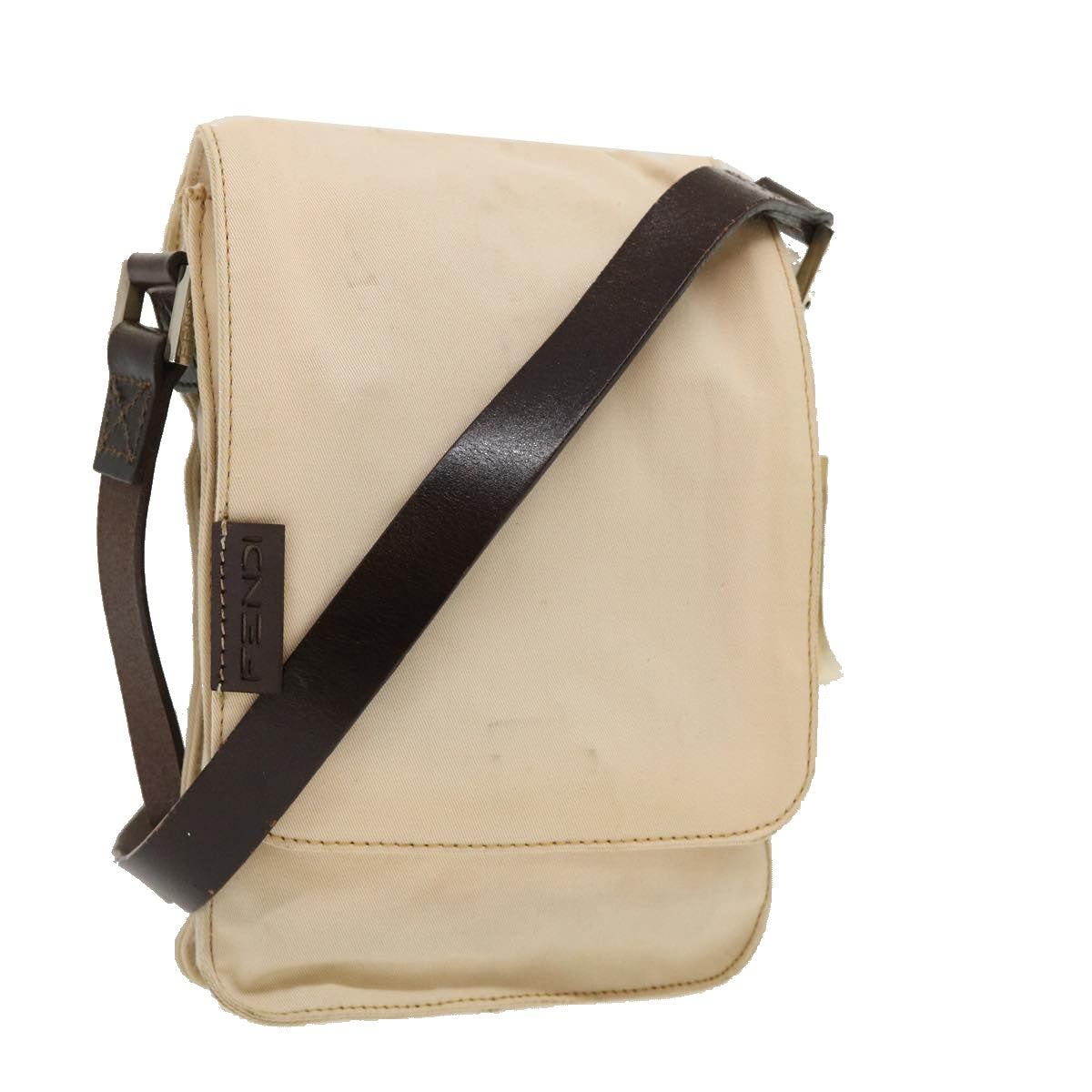 FENDI Shoulder Bag Pouch Canvas Beige Auth ar6924