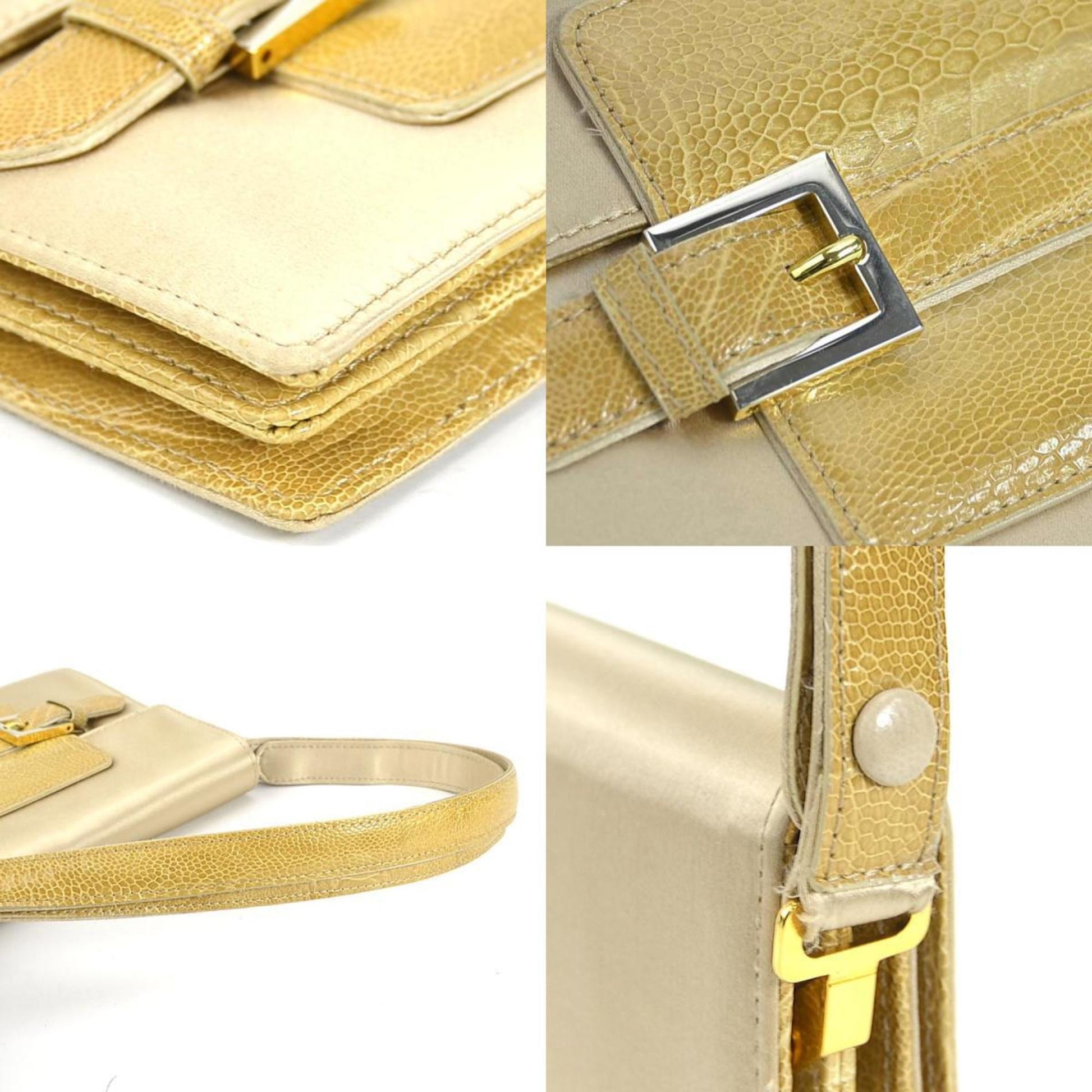 FENDI Shoulder bag satin/embossed leather gold/beige ladies