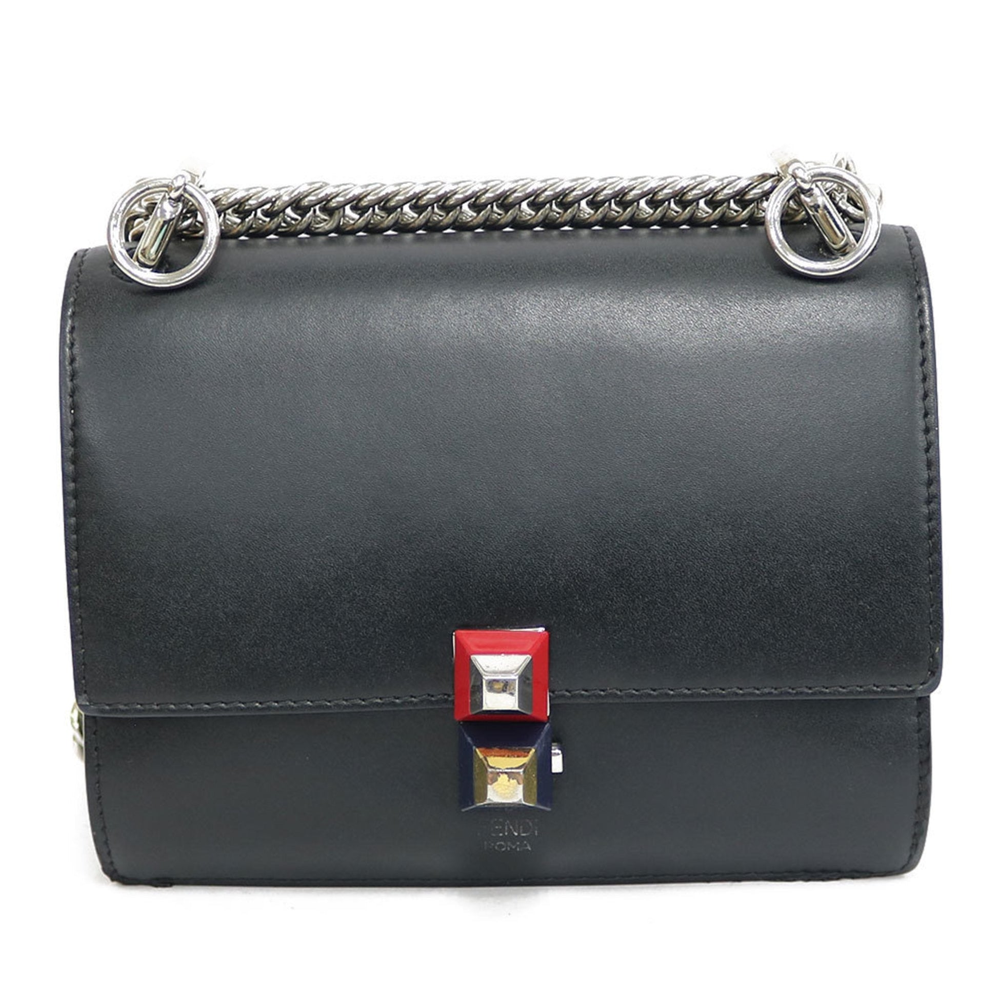 FENDI Shoulder Bag Studs Chain Canay Small Black Women's Leather