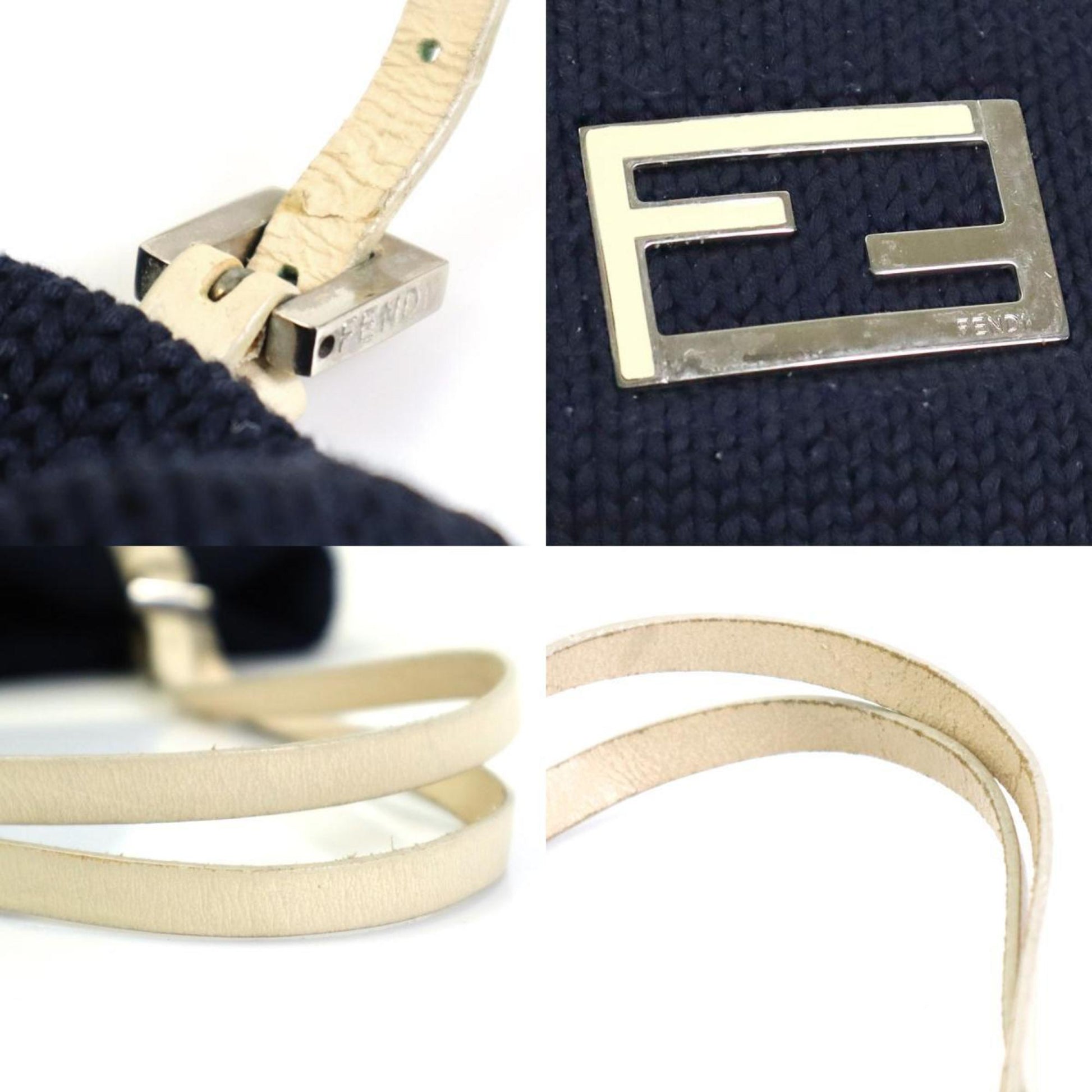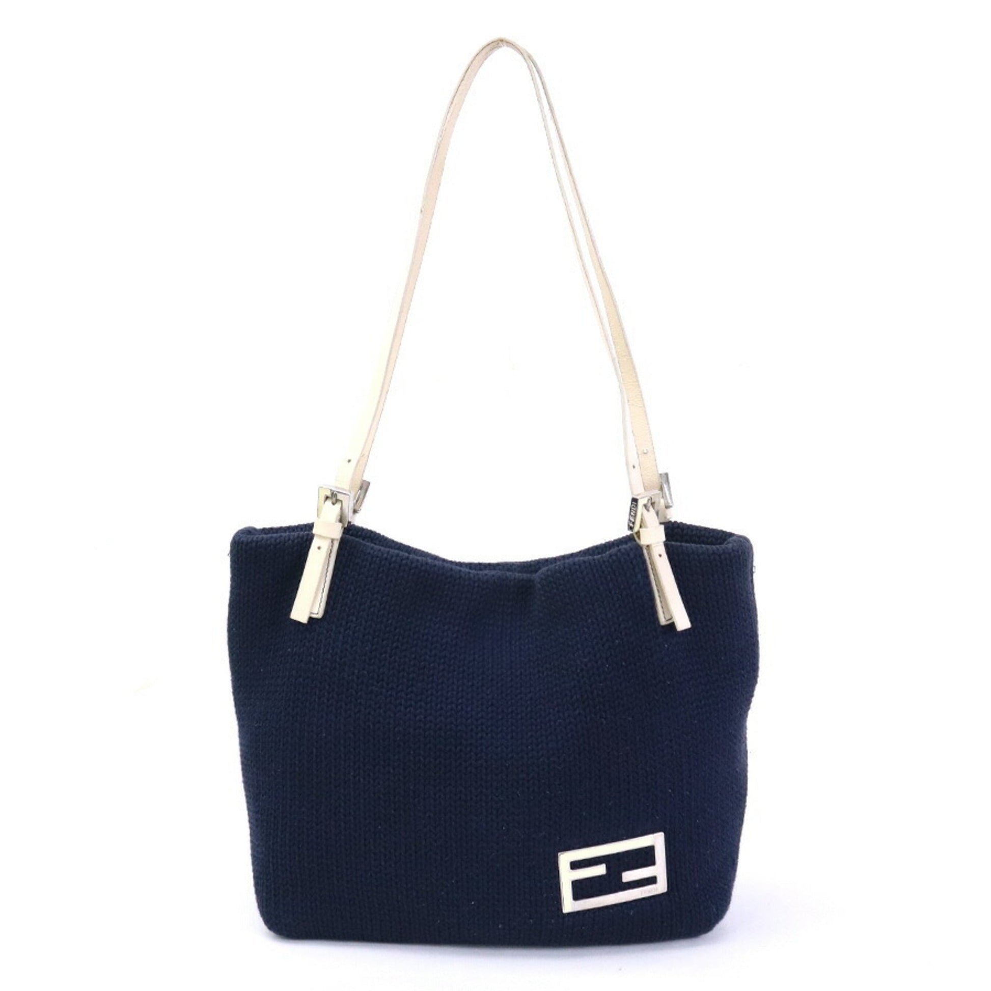 Fendi shoulder bag tote wool/leather navy/off-white silver ladies e55874i