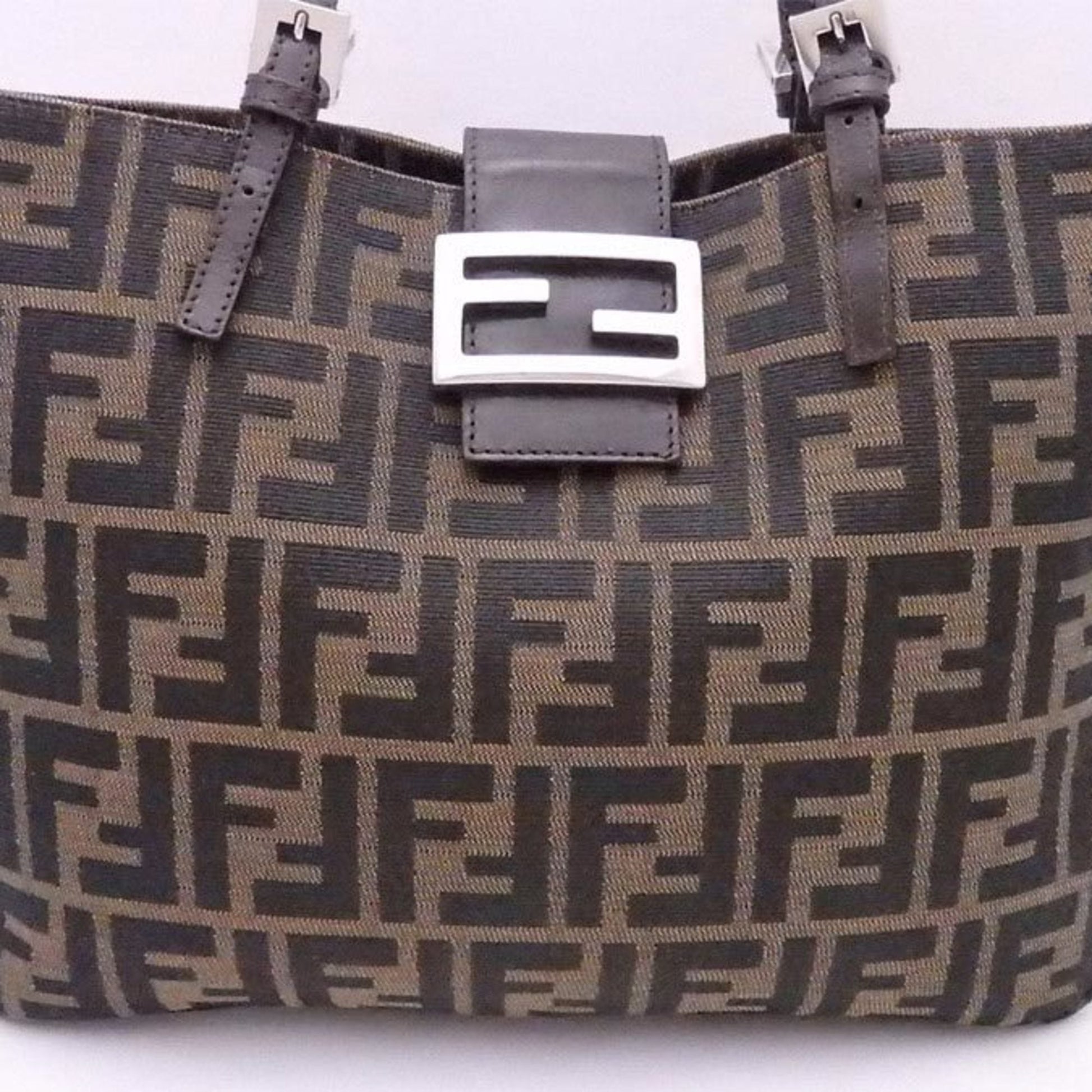 Fendi shoulder bag Zucca brown canvas x leather silver hardware ladies