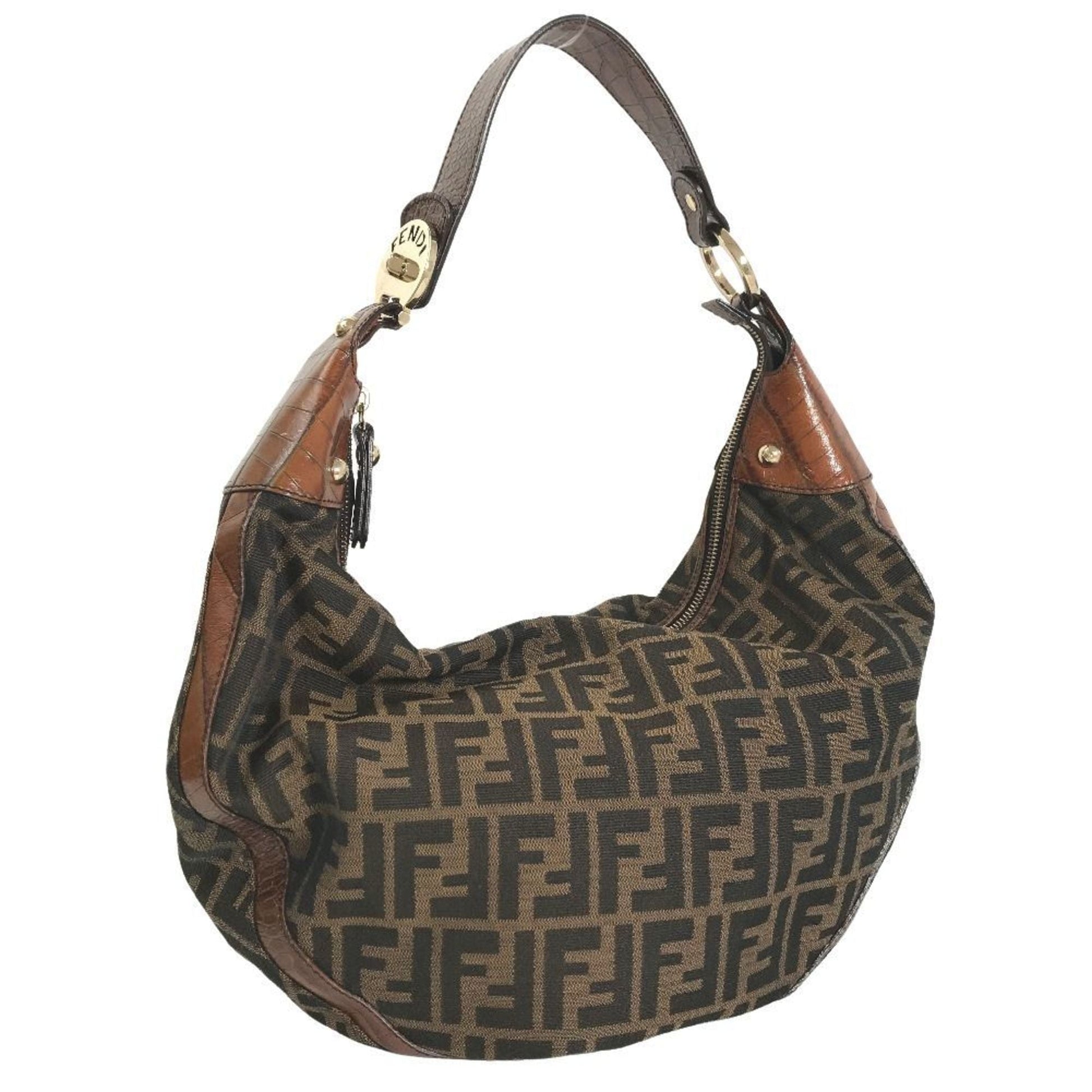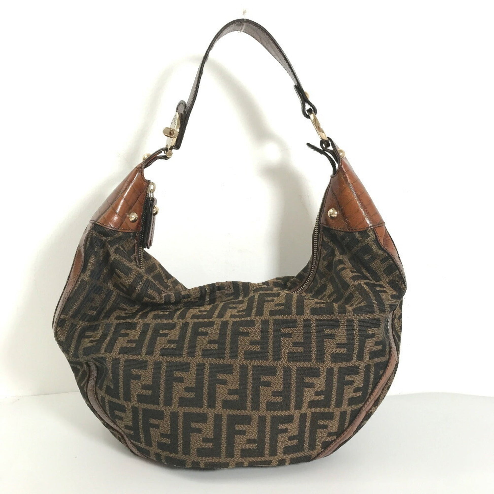 FENDI shoulder bag Zucca pattern embossed 82JC979 campus leather brown ladies