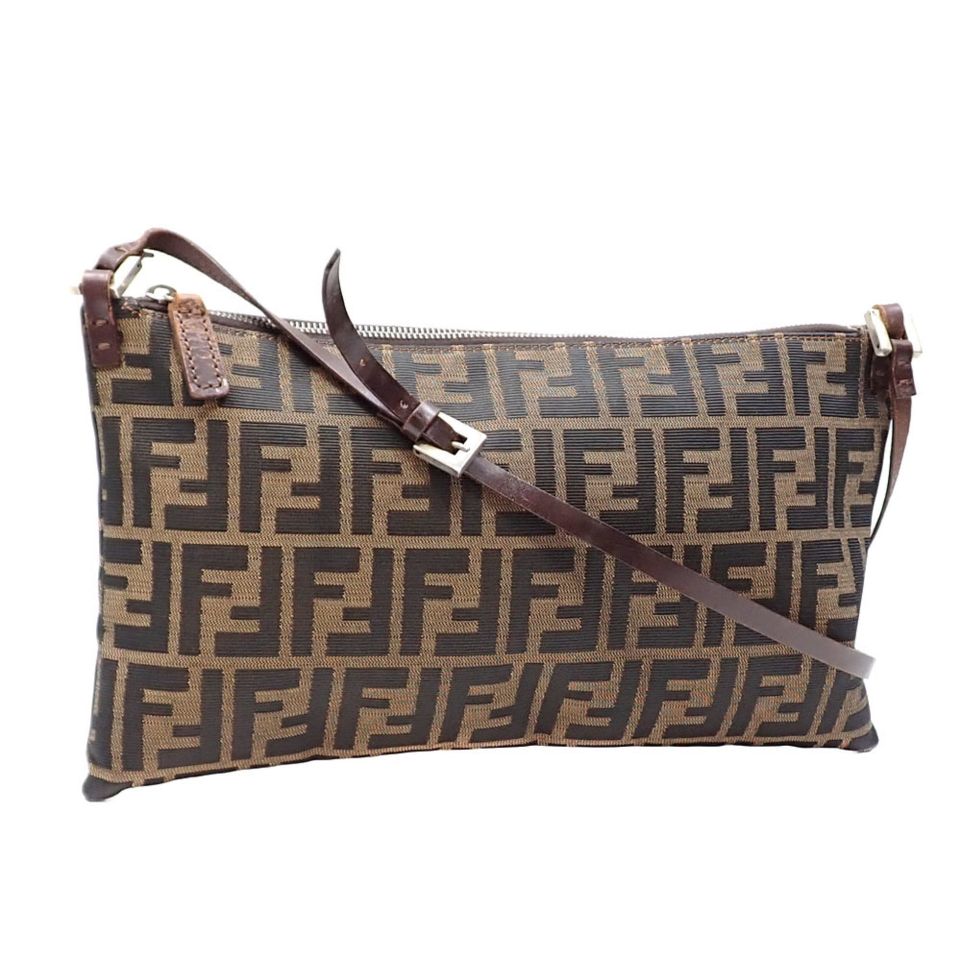 Fendi Shoulder Bag Zucca Women's Brown Black Canvas Leather 71-16330-2-012