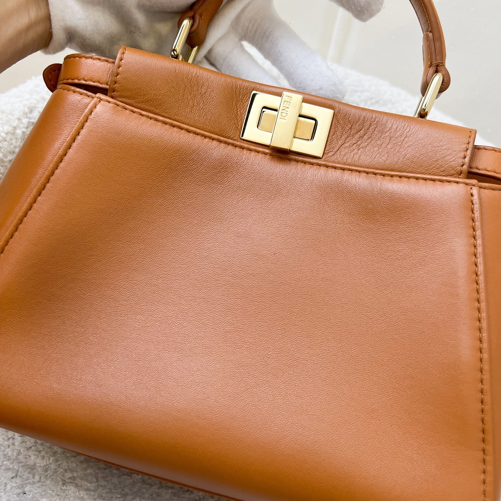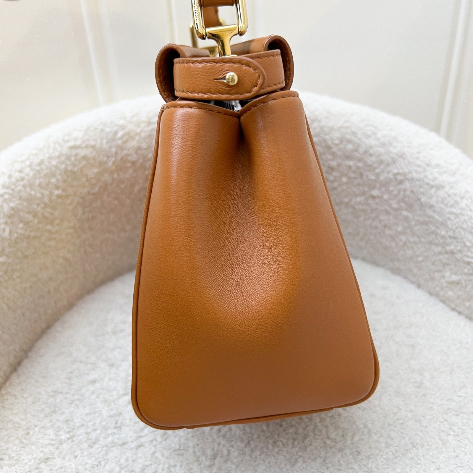 Fendi Mini Peekaboo in Brandy and White Lambskin and GHW