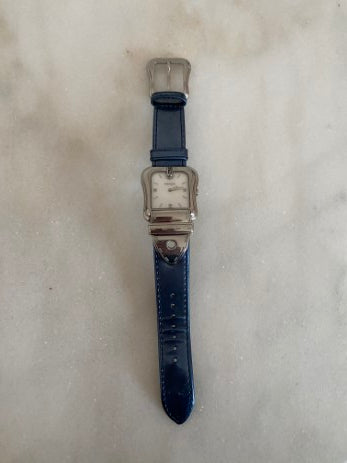 - Material: Stainless Steel and White Mother of Pearl Dial with Blue Leather Strap