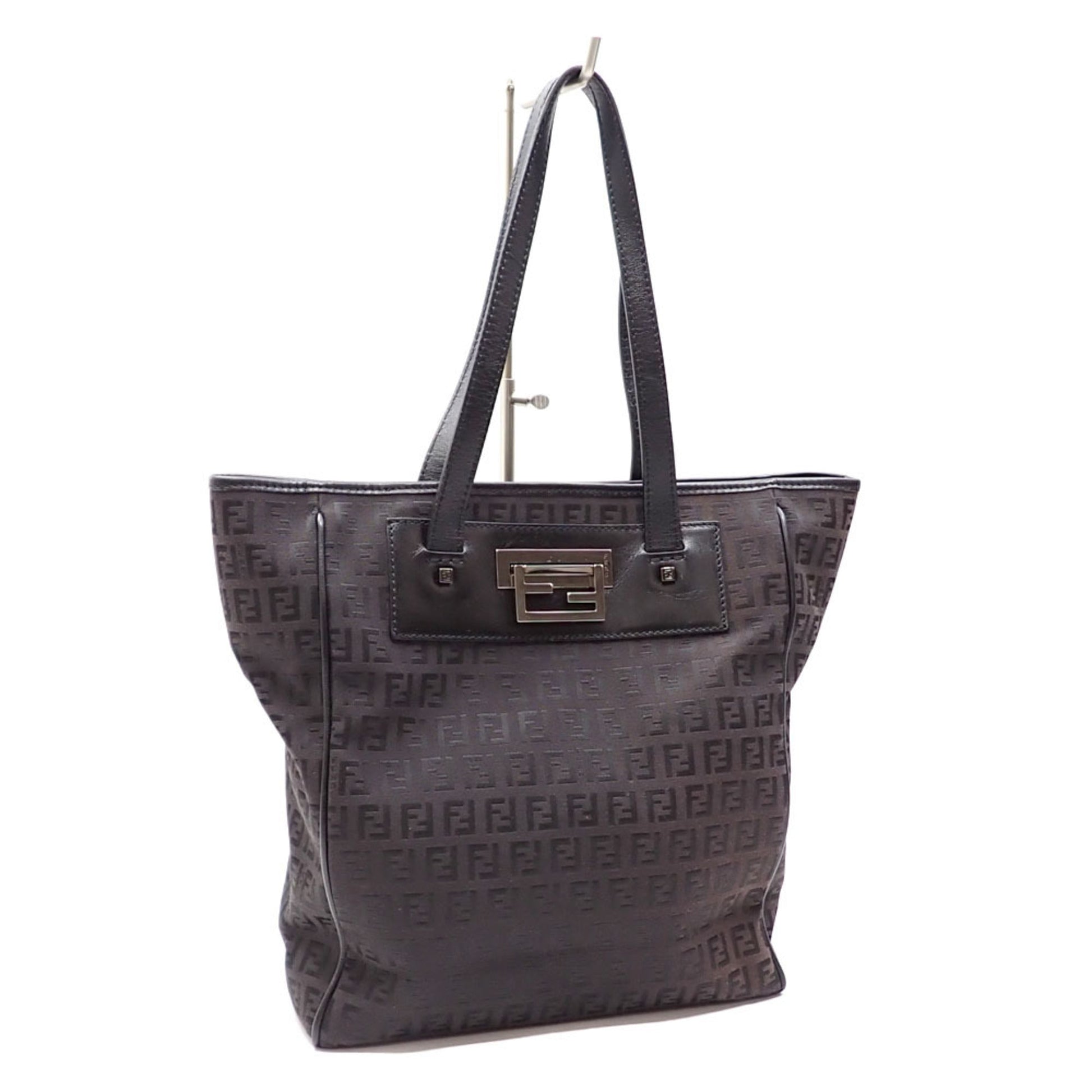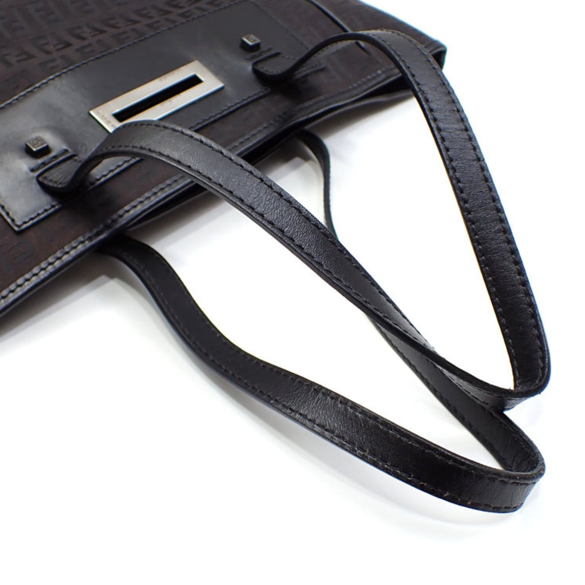 FENDI Tote Bag Zucchino Women's Black Brown Canvas Leather 8BH174 Hand