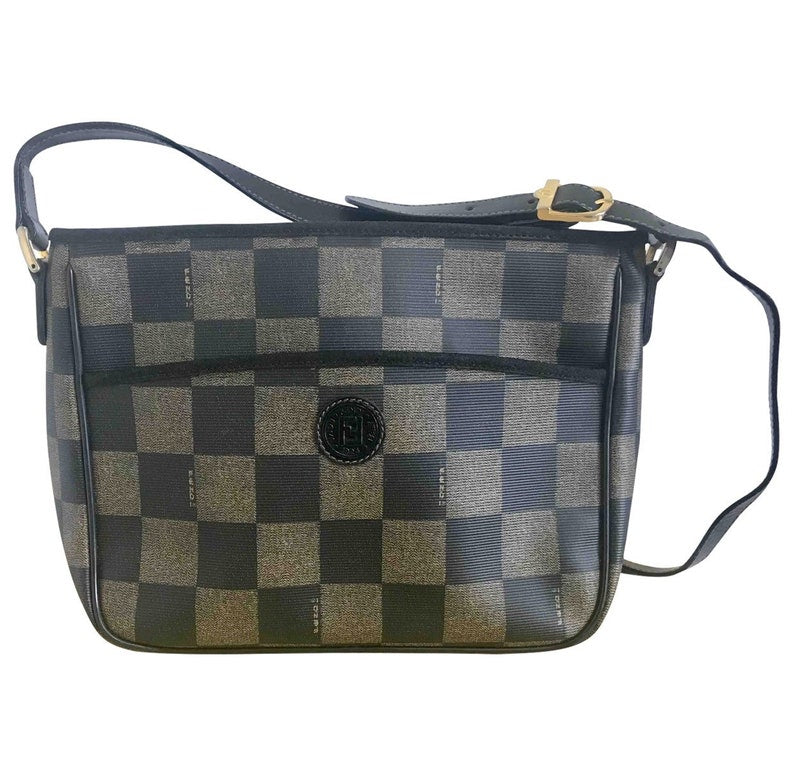 FENDI Vintage pecan chess pattern shoulder bag with FF logo motif