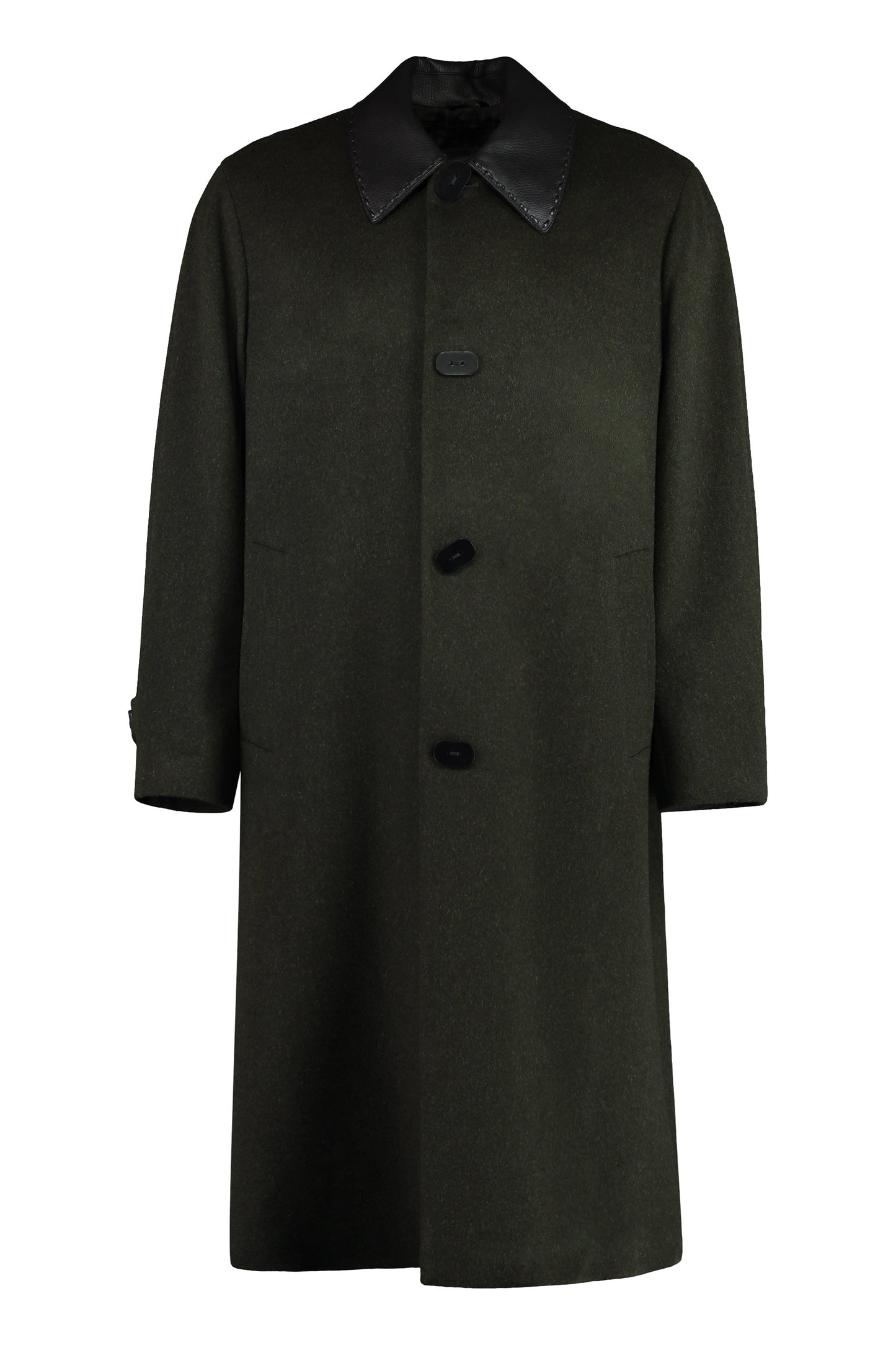FENDI Wool Blend Jacket with Leather Collar for Men
