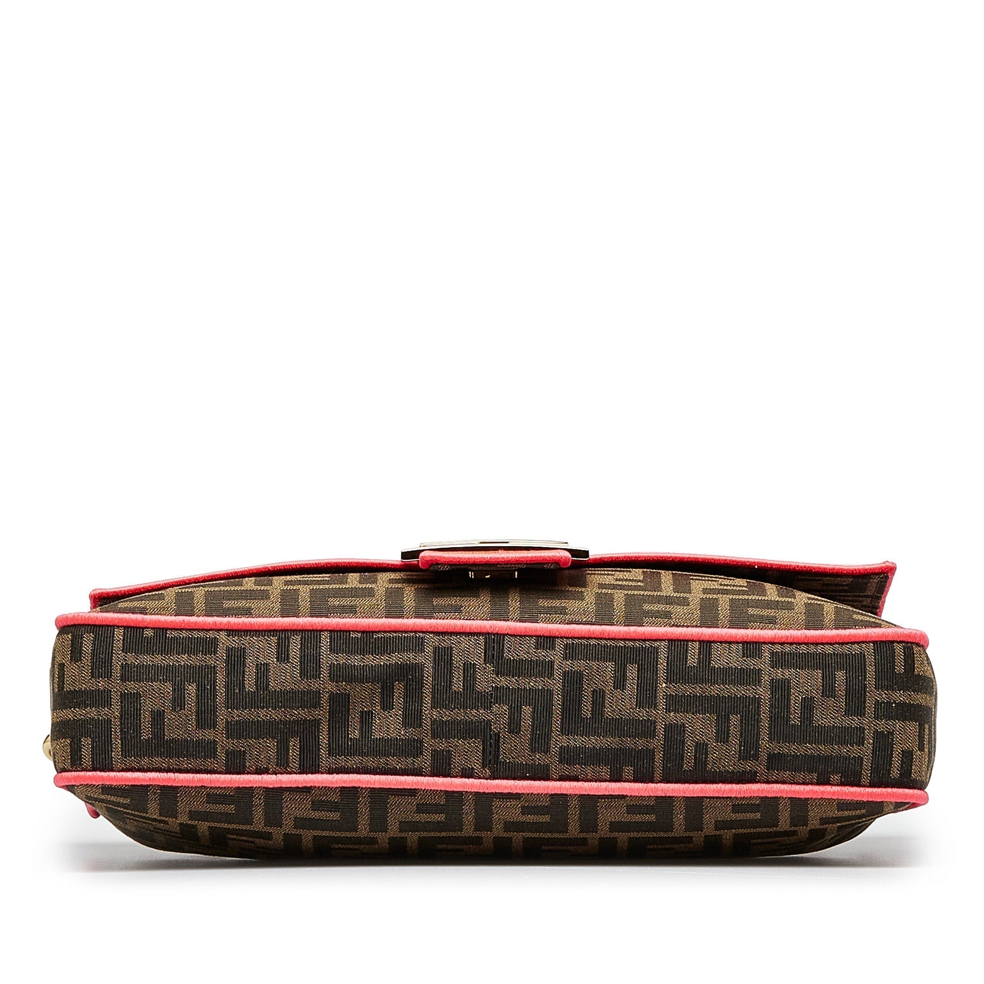 The Baguette satchel features a canvas body, a flat leather top handle, an adjustable flat shoulder strap, front flap with magnetic closure, and an interior zip pocket. Comes with dust bag