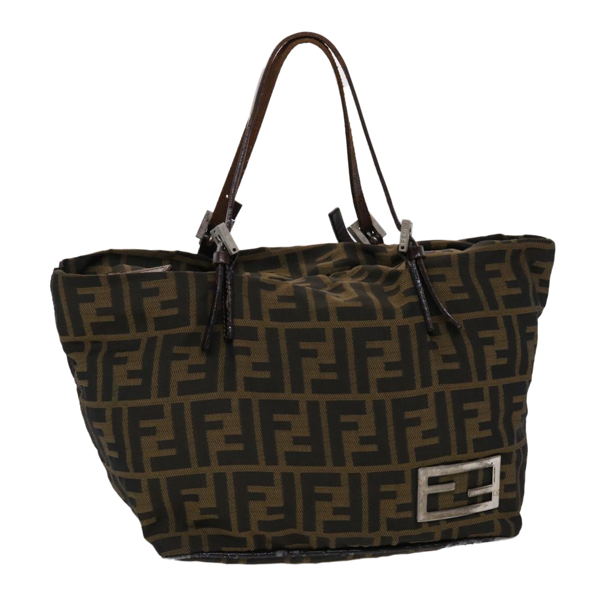 FENDI Zucca Canvas Hand Bag Nylon Brown Black Auth 45877