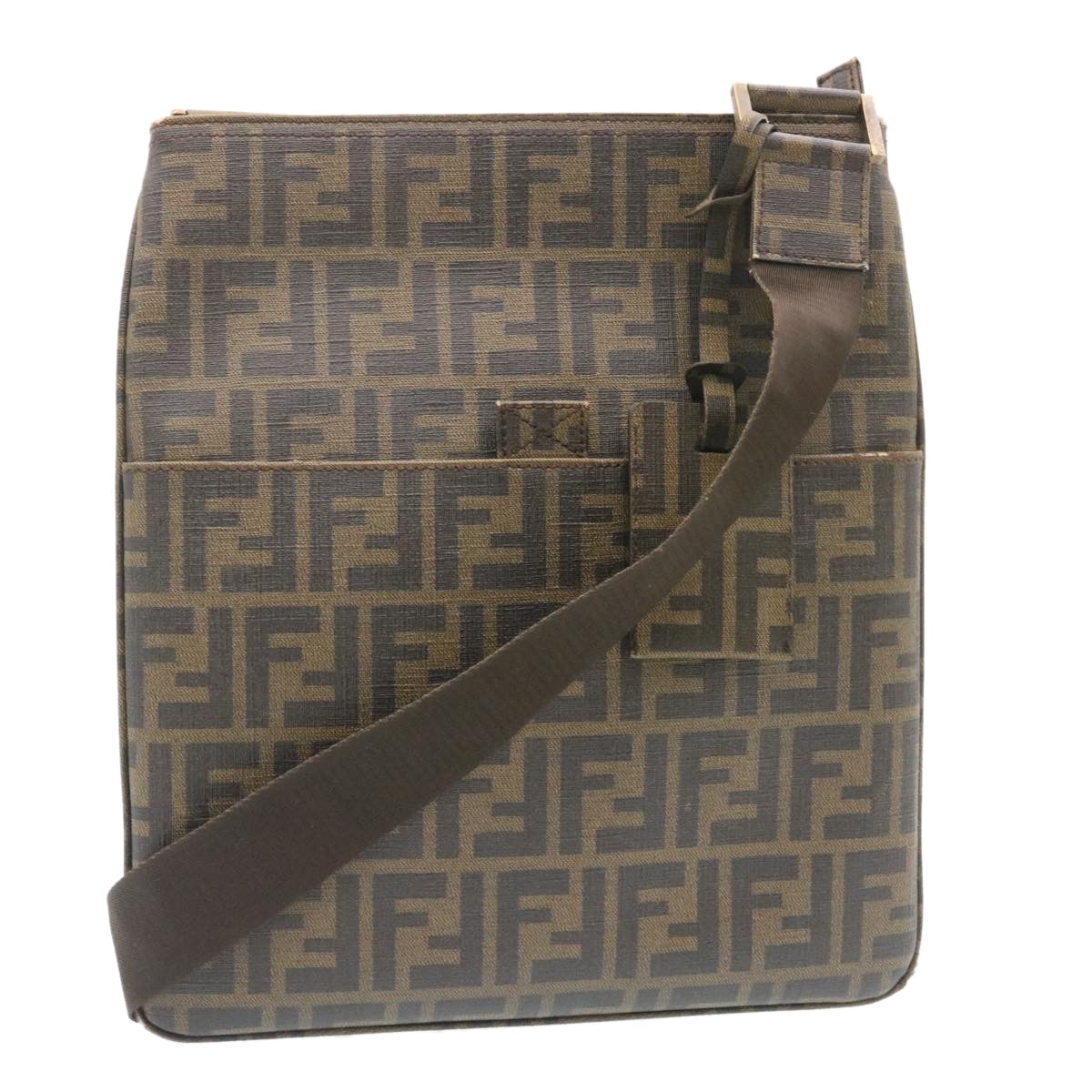 FENDI Zucca Canvas Shoulder Bag Canvas Brown Black am2051g