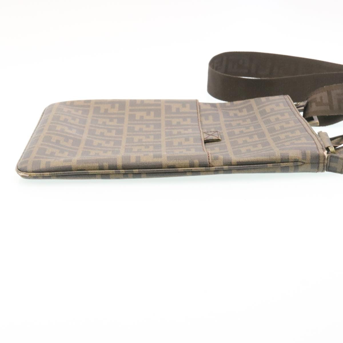 FENDI Zucca Canvas Shoulder Bag Canvas Brown Black Auth am2051g