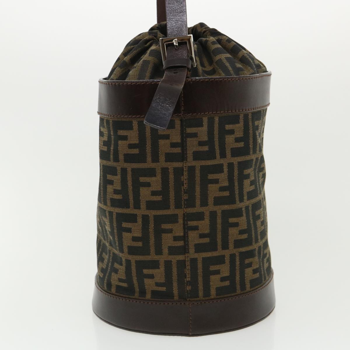 FENDI Zucca Canvas Shoulder Bag Cylindrical Brown Black Auth yk5779