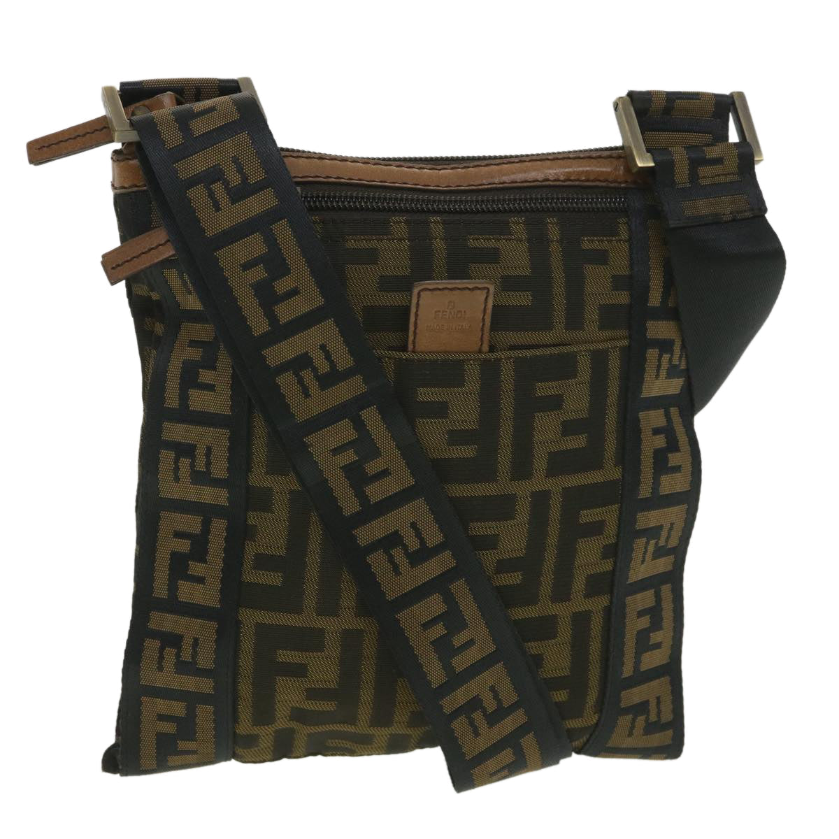 FENDI Zucca Canvas Shoulder Bag Nylon Brown yk6092