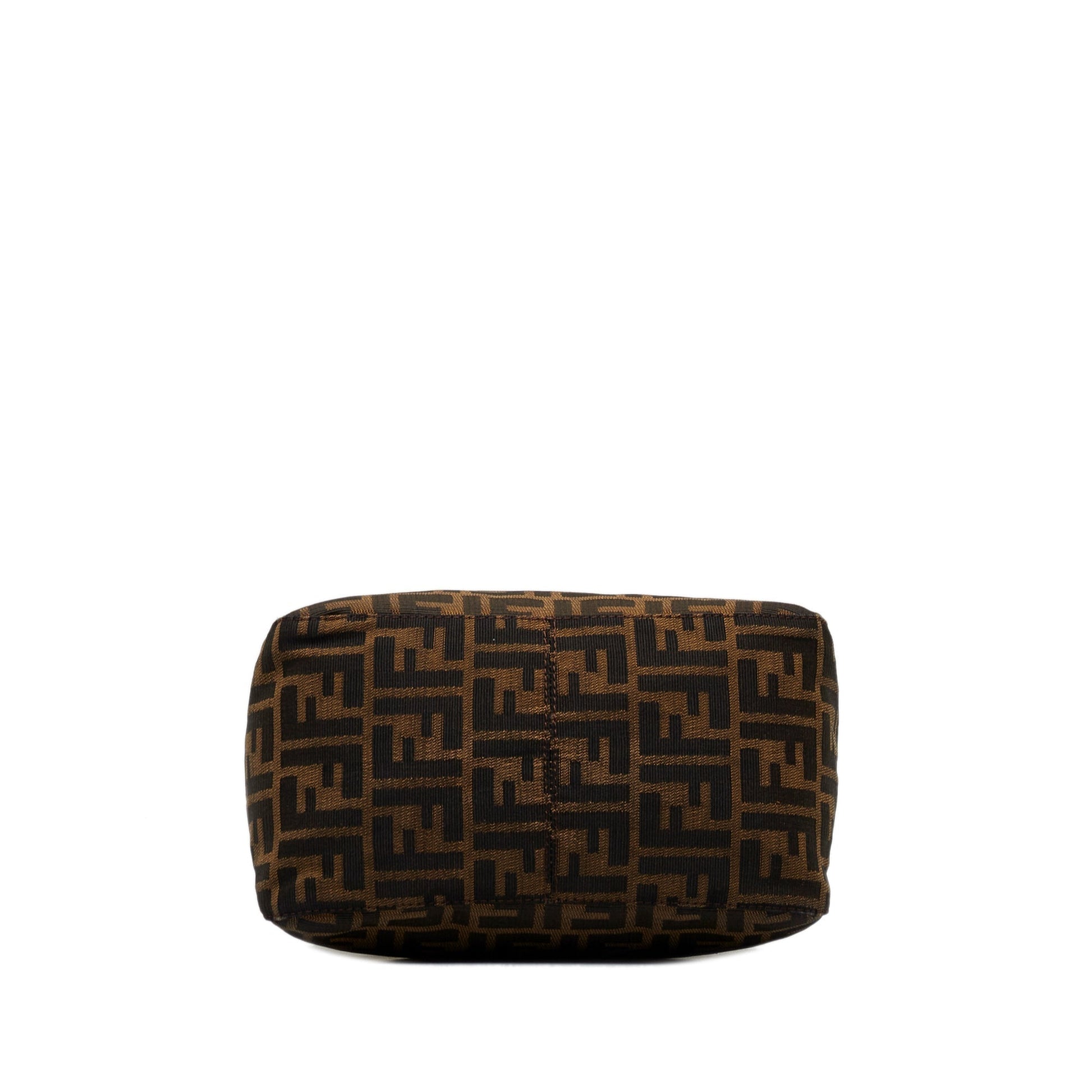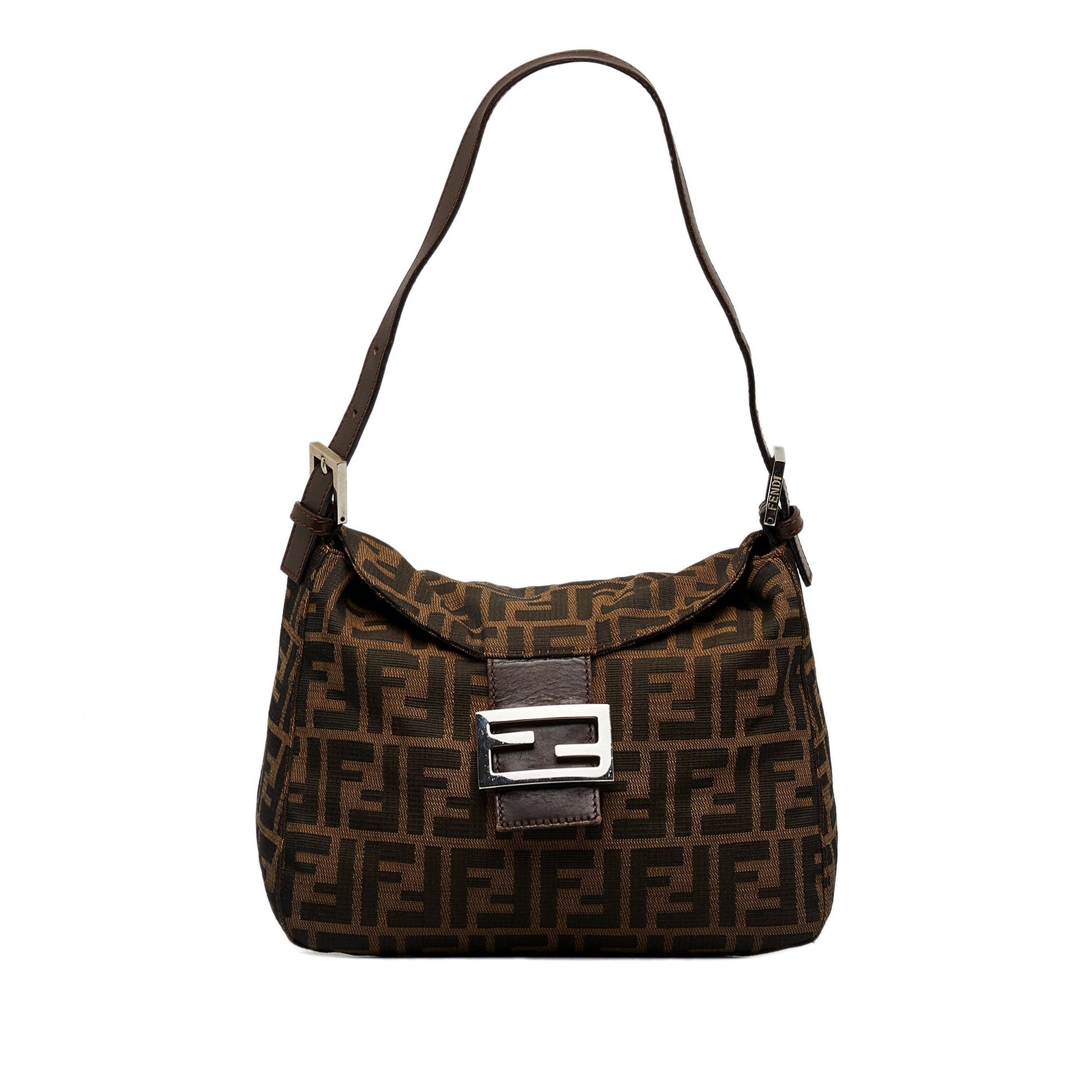 This shoulder bag features a canvas body, a flat leather handle, double flaps with flat strap and magnetic snap closure, and an interior zip pocket.
