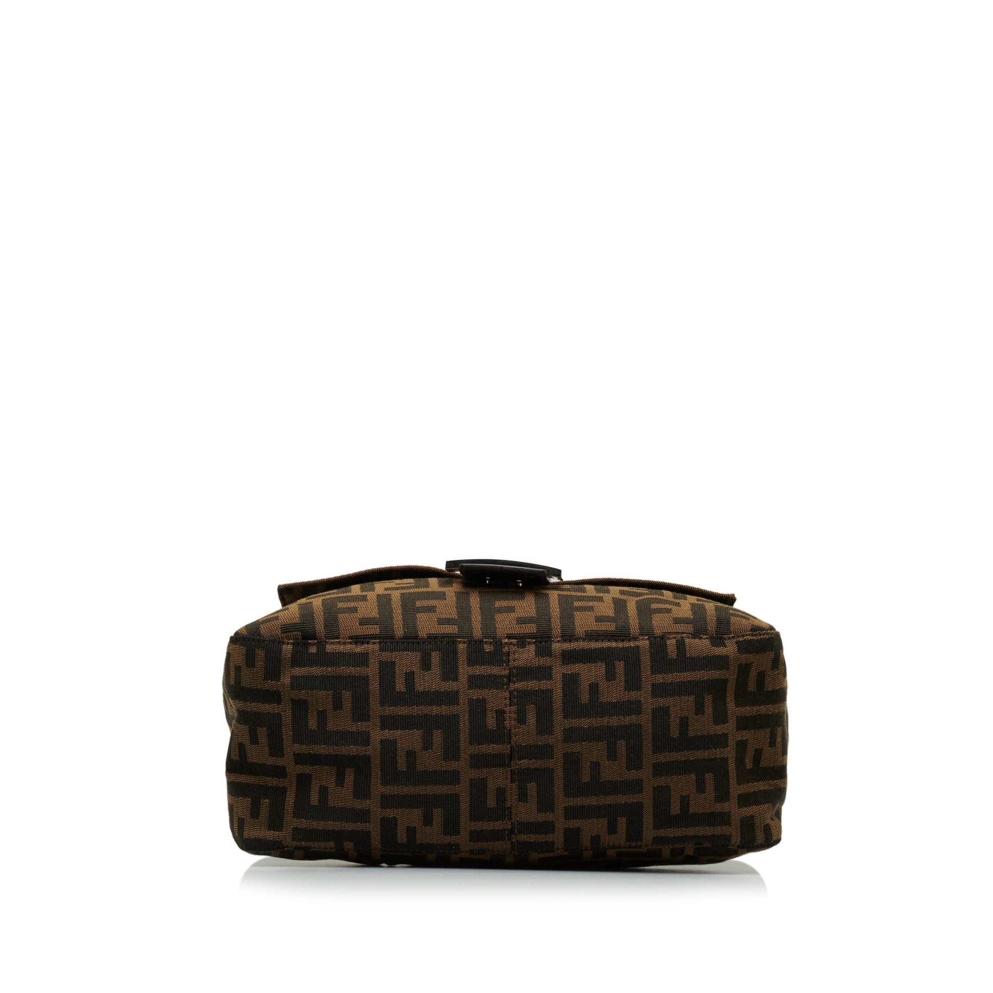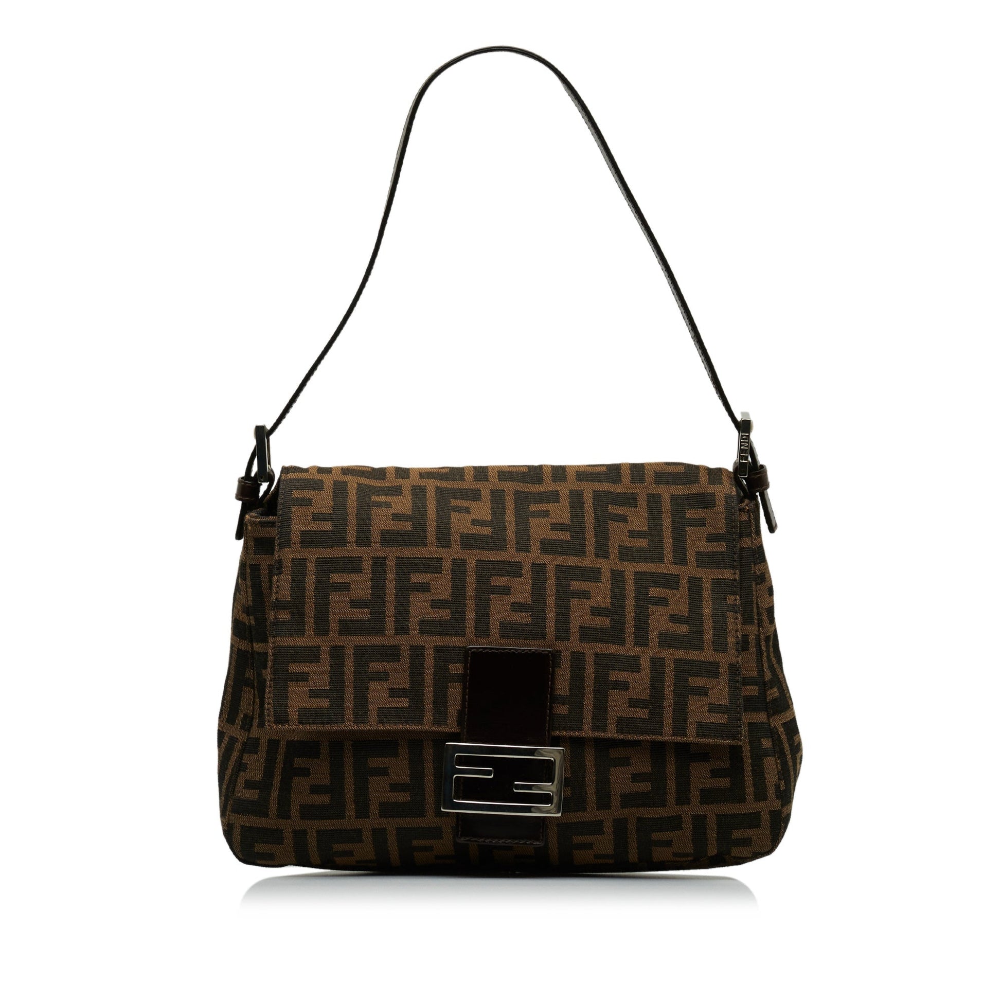 The Mamma Forever shoulder bag features a canvas body, an adjustable flat leather strap, a front flap with a magnetic snap closure, and an interior zip pocket.