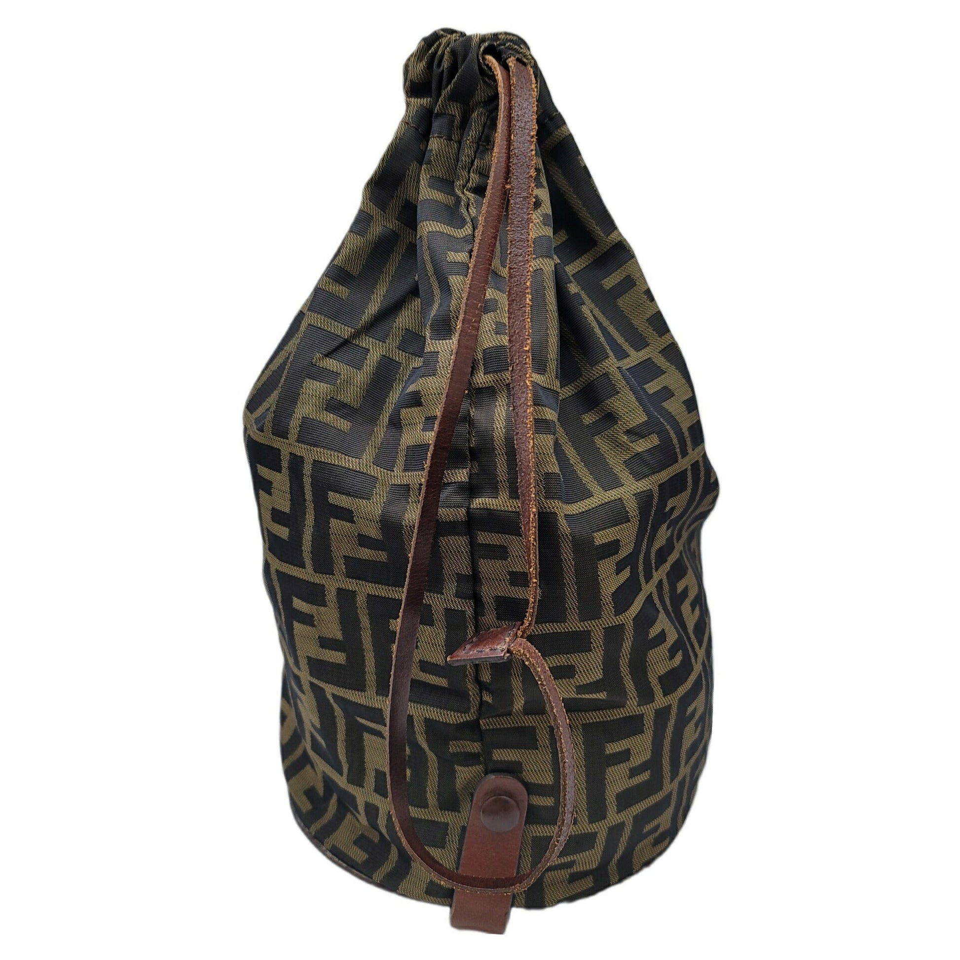 FENDI Zucca pattern bag brown khaki leather storage foldable nylon women's men's unisex