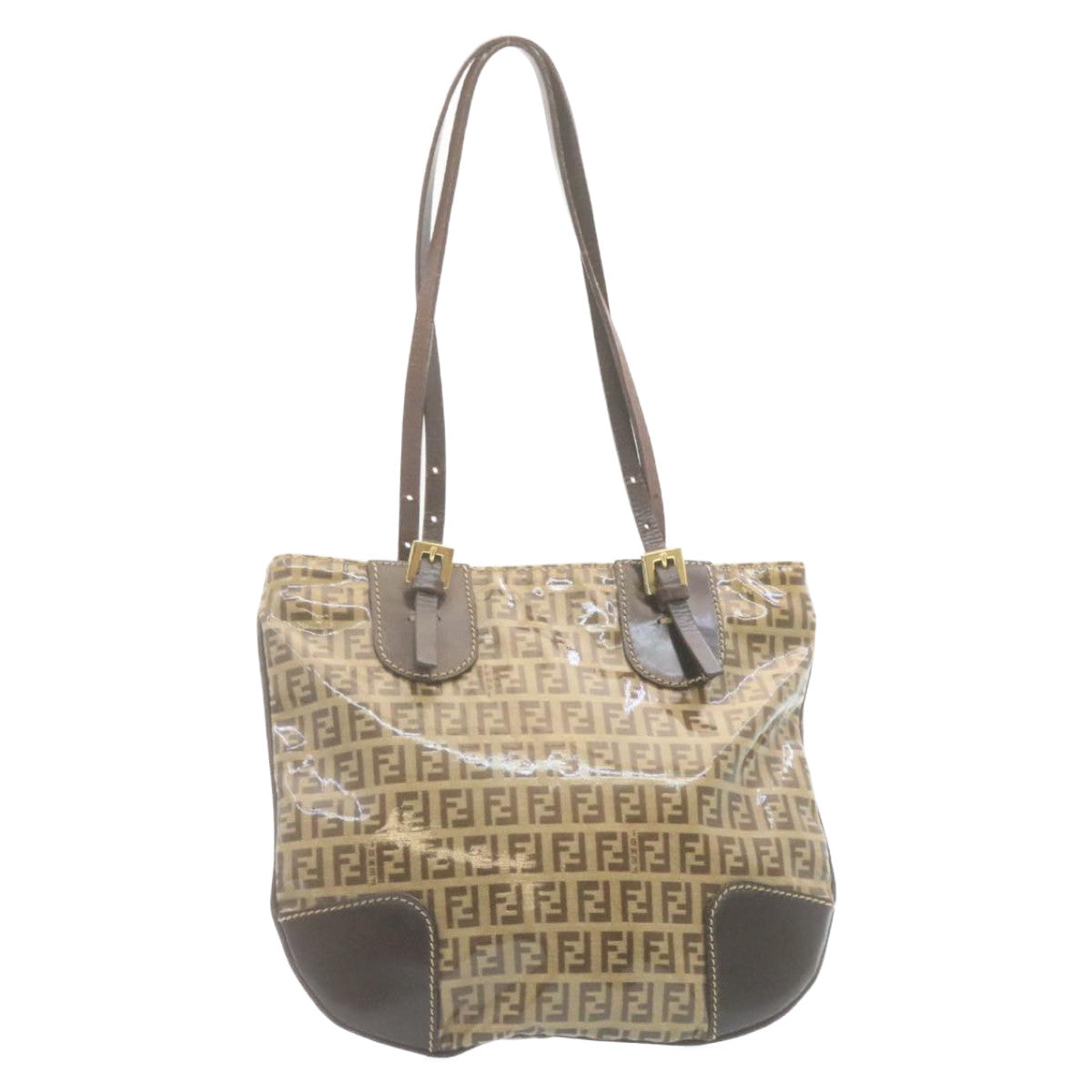 FENDI Zucchino Canvas Mamma Baguette Shoulder Bag Enamel Brown Auth 34666