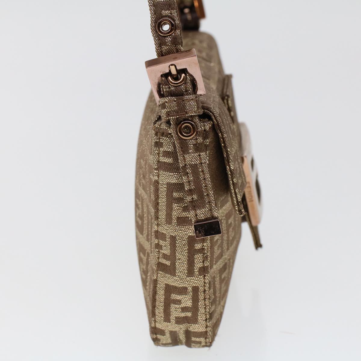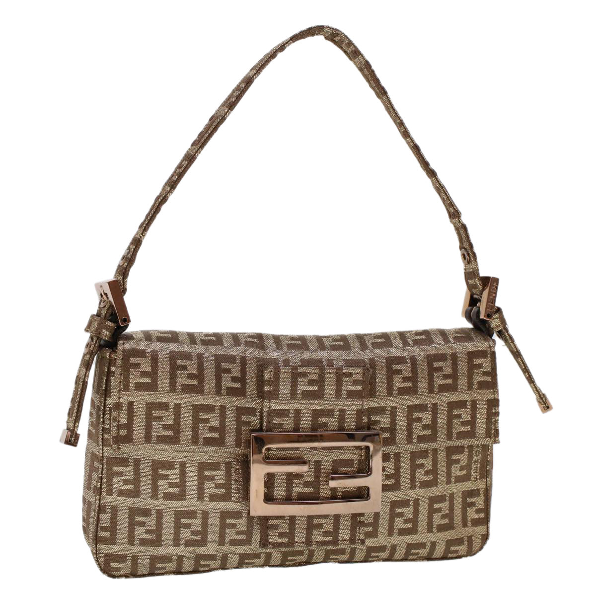 FENDI Zucchino Canvas Mini Mamma Baguette Pouch Gold Tone 45633A