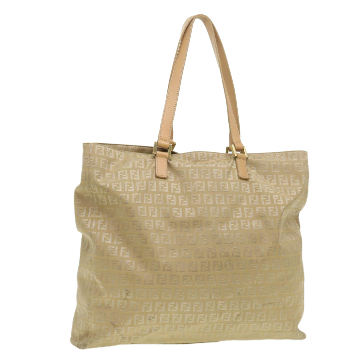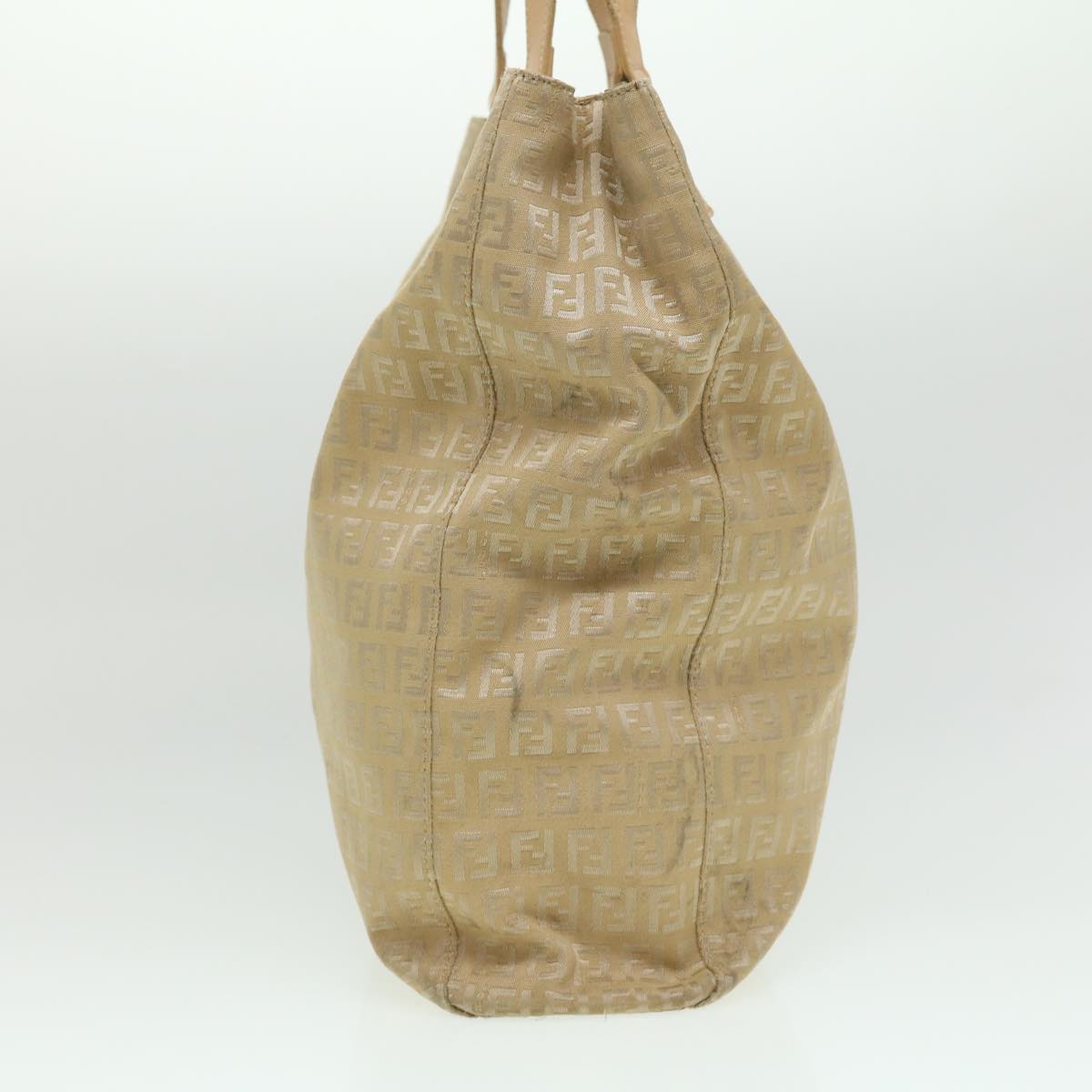 FENDI Zucchino Canvas Shoulder Bag Beige Auth ti732